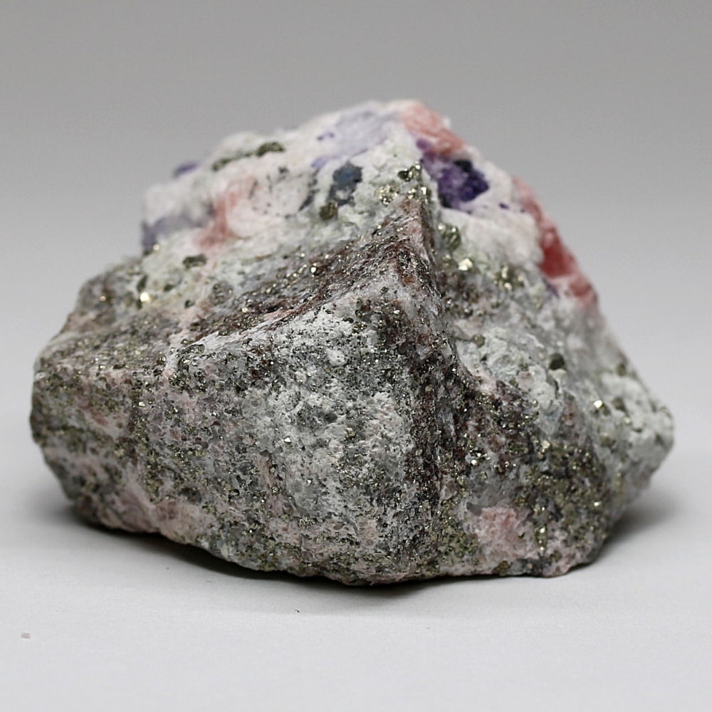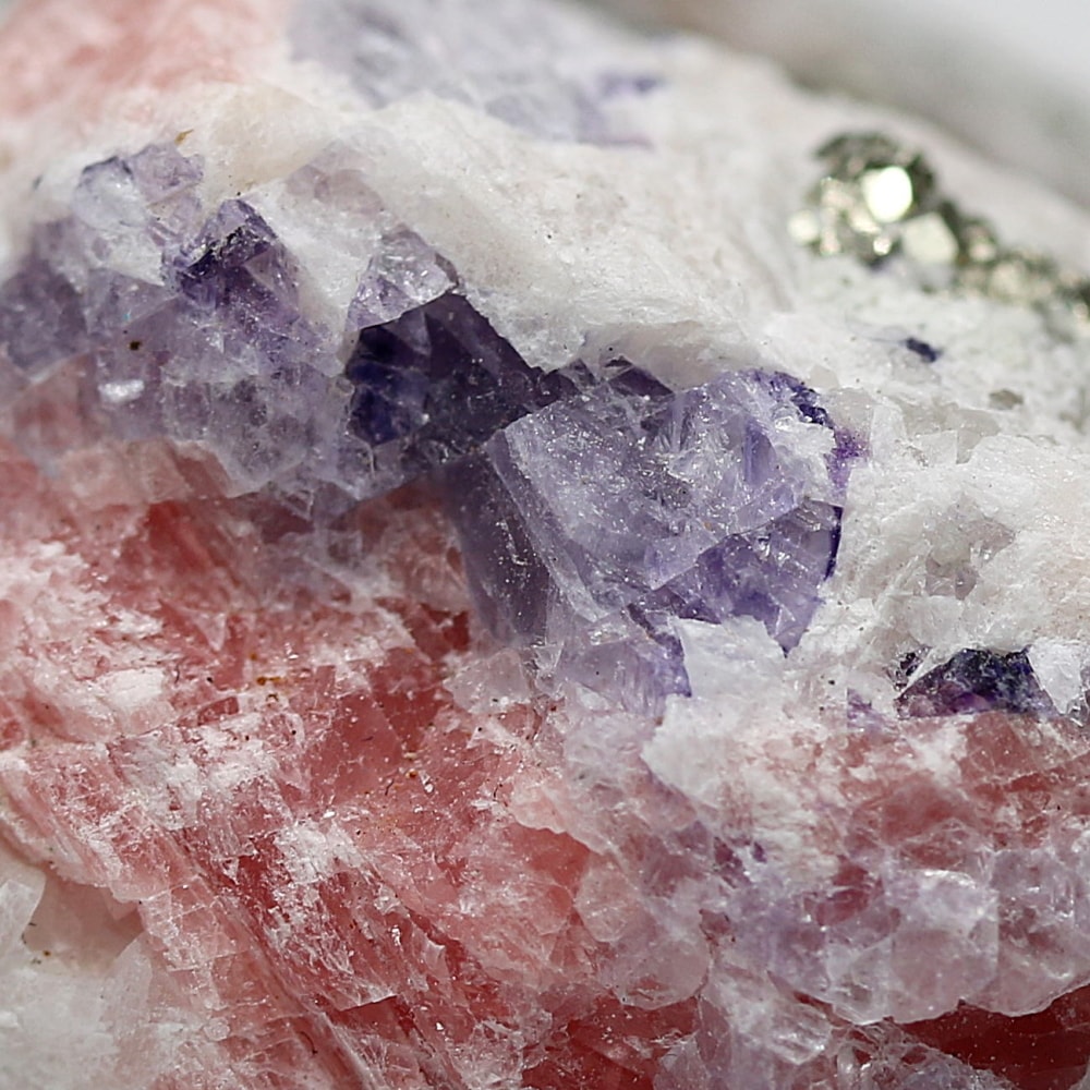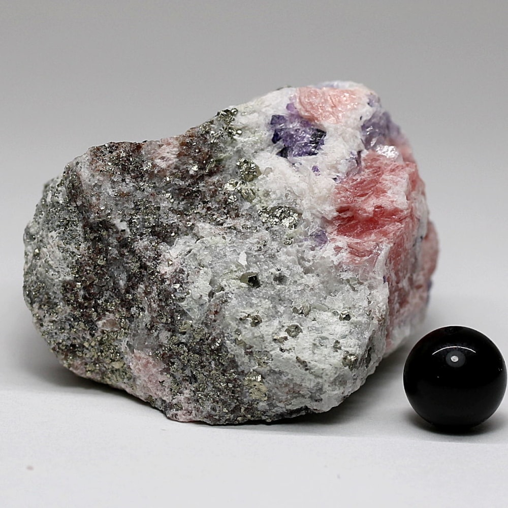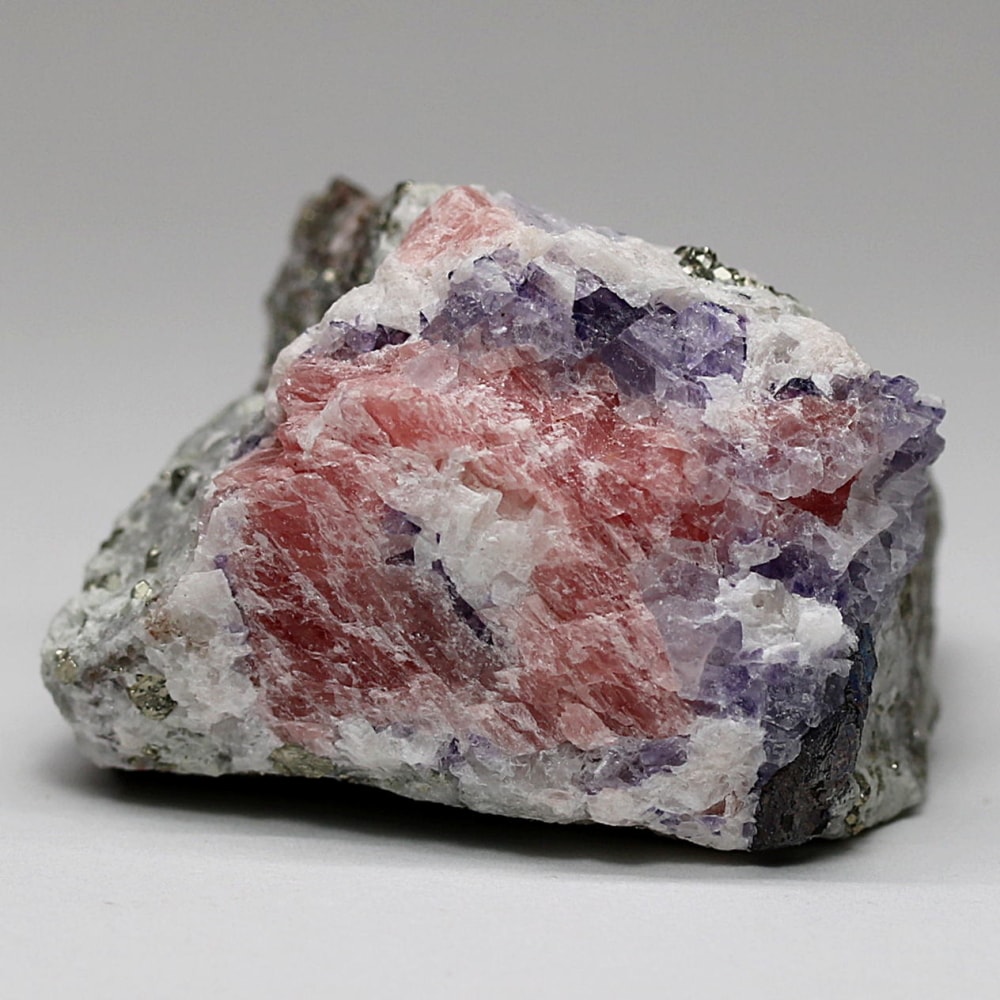 インカローズ結晶原石(ロードクロサイト)/フローライト&パイライト共生(総重量85.4g)