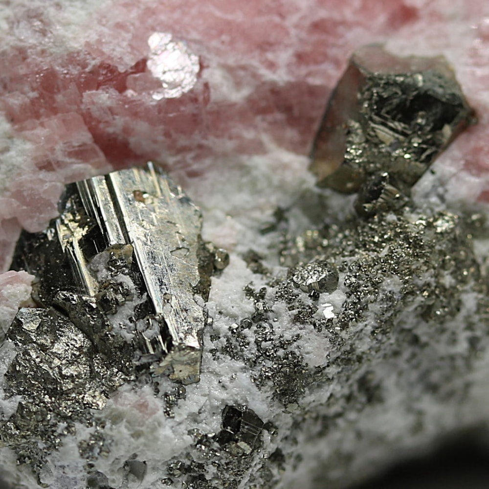 母岩にはインカローズだけでなく、微かにフローライト(蛍石)やパイライト(黄鉄鉱)が共生しており、自然が生み出した複雑で奥行きのある景観を形成しています。