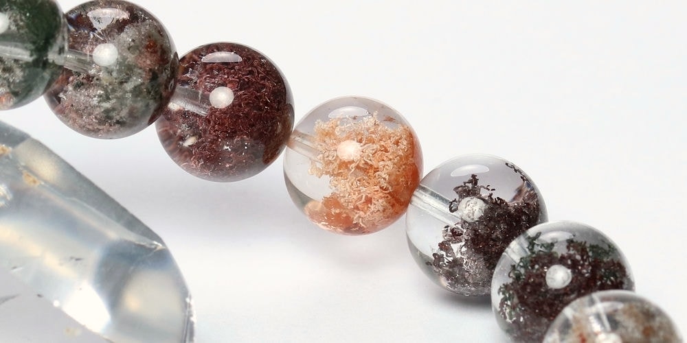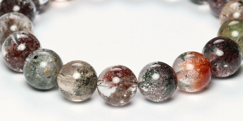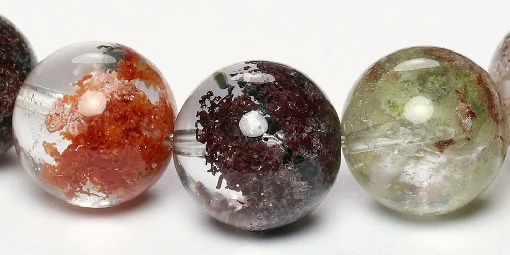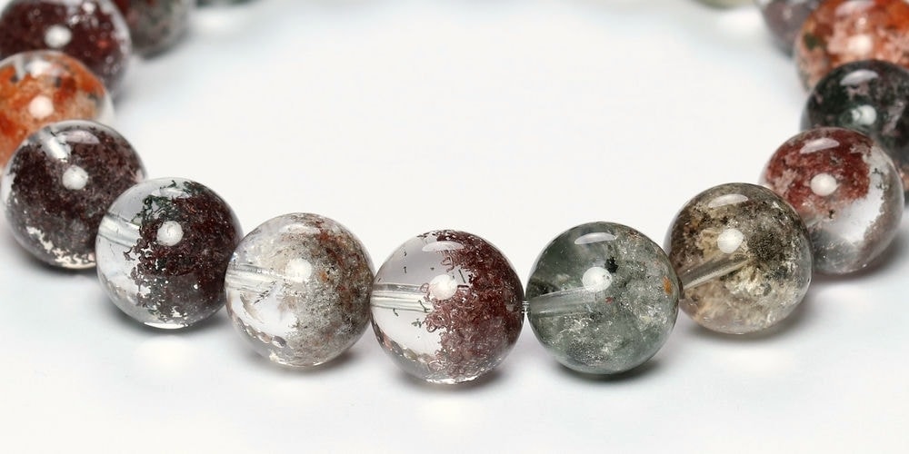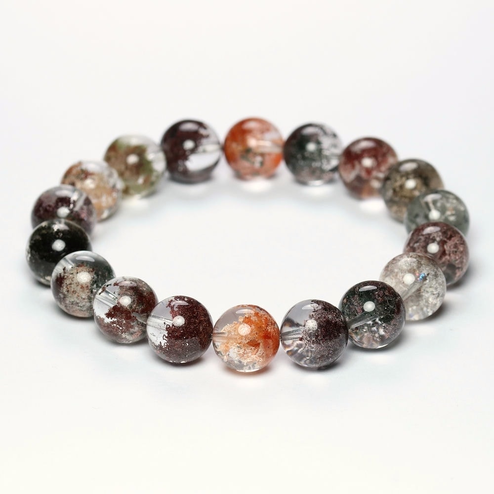様々な成分や鉱物が透明度高い水晶内部に閉じ込められた、貴重な高品質ミックスガーデンクォーツブレスレットでございます。
