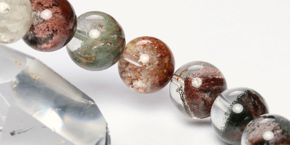様々な成分や鉱物が透明度高い水晶内部に閉じ込められた、貴重な高品質ミックスガーデンクォーツブレスレットでございます。