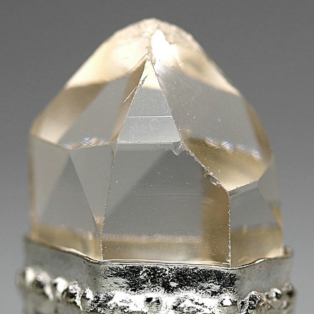 控えめなヴィンテージの風合いが全体をやさしくまとめ、澄んだ輝きと清らかな透明感を備えたマニハールヒマラヤ水晶の魅力を静かに惹き立てています。