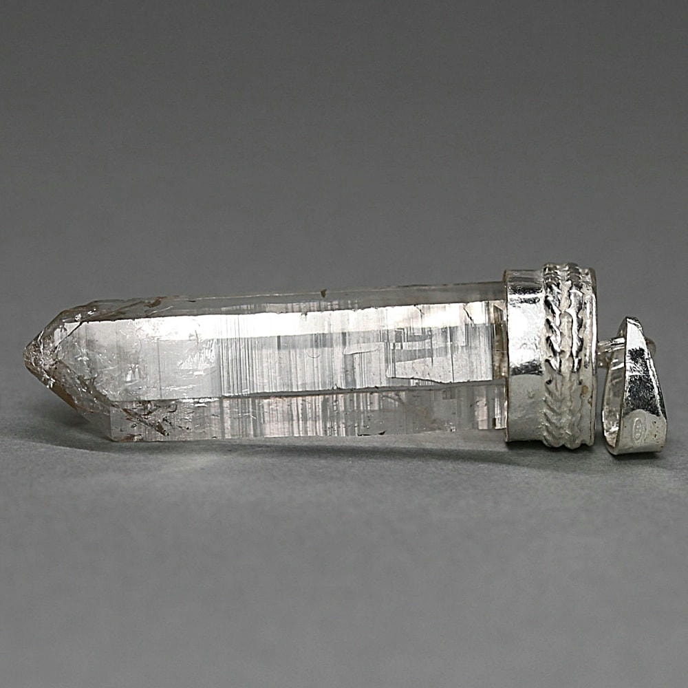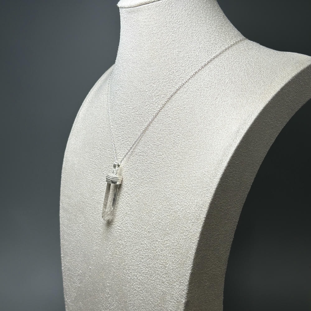 ペンダント加工は、水晶が持つ自然な表情や透明感を損なわないよう、ひとつひとつ丁寧にハンドメイドで仕立てております。