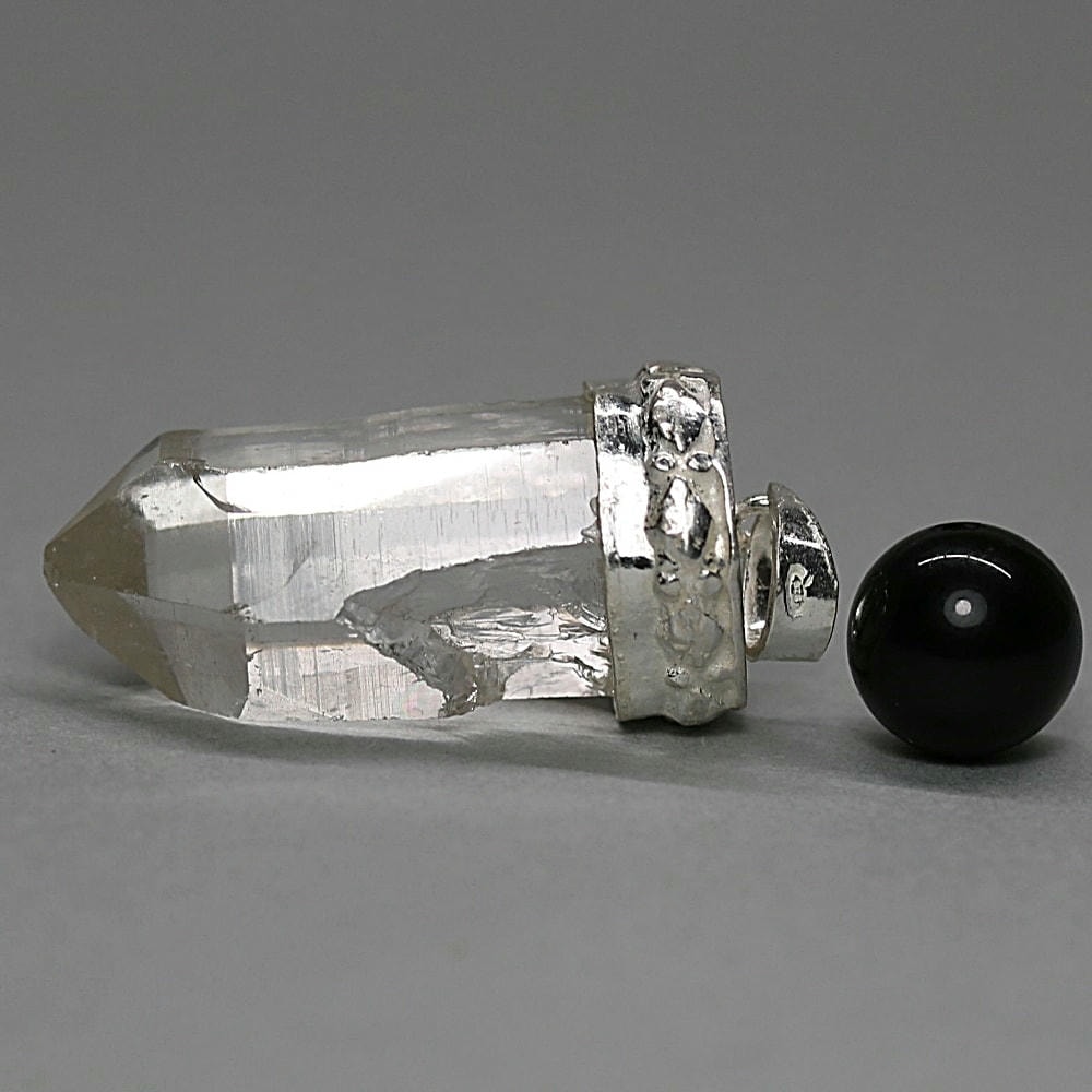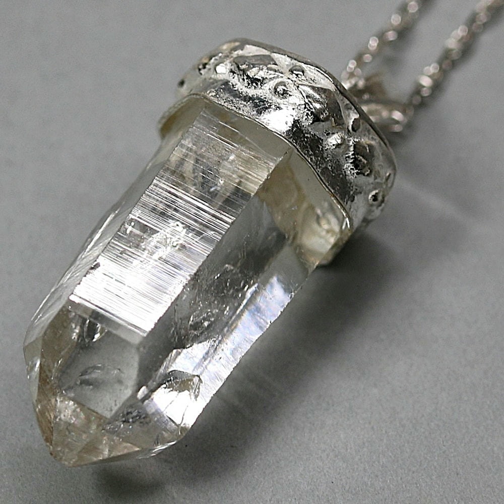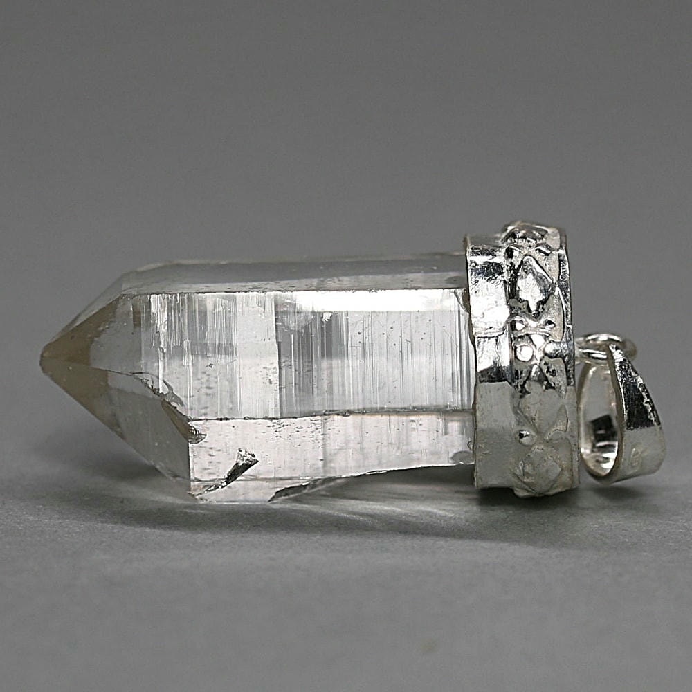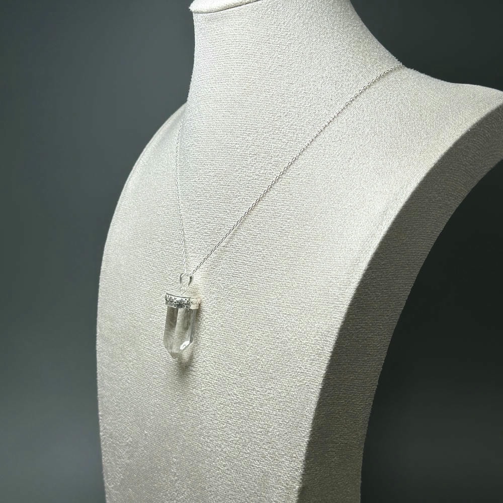 ペンダント加工は、水晶が持つ自然な表情や透明感を損なわないよう、ひとつひとつ丁寧にハンドメイドで仕立てております。