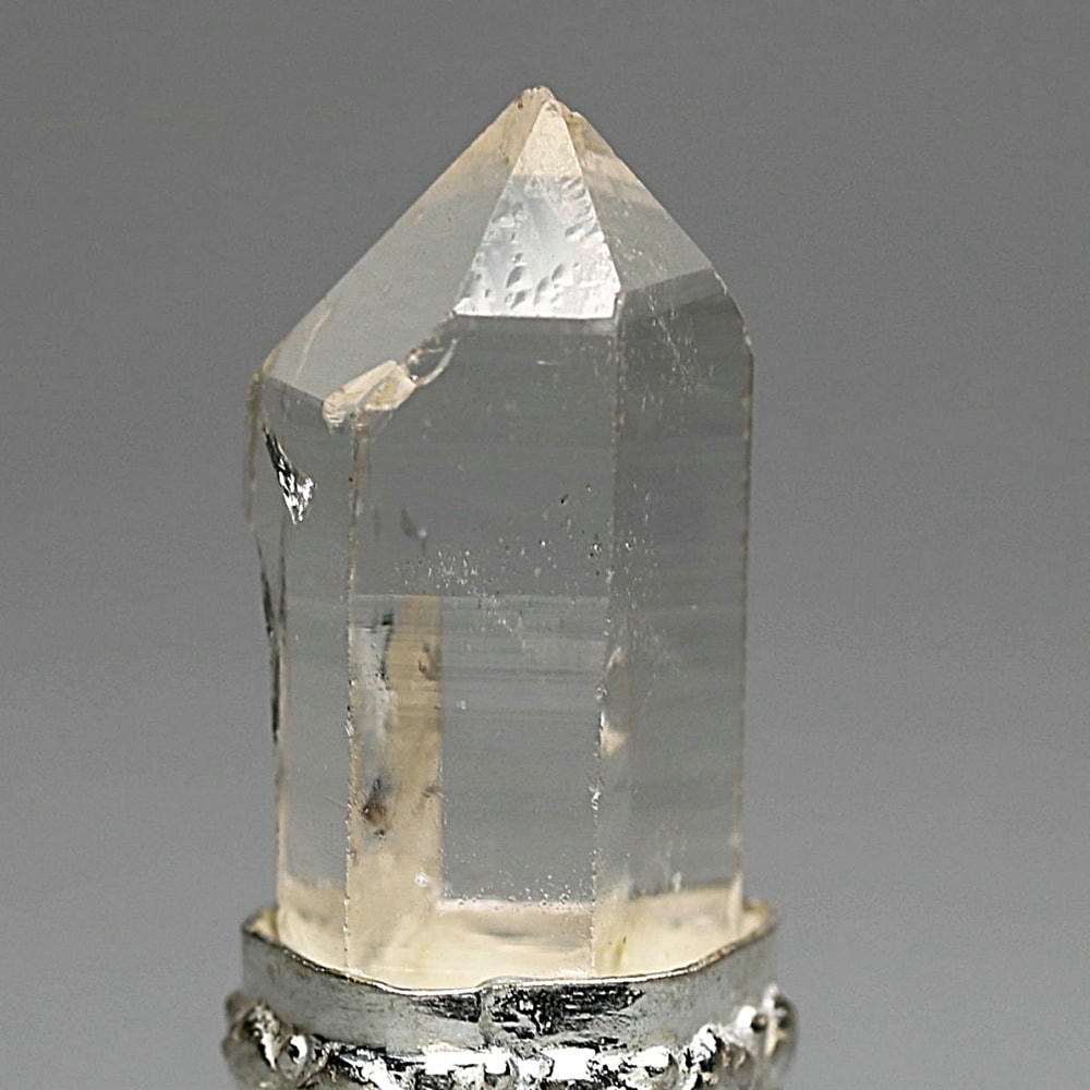 控えめなヴィンテージの風合いが全体をやさしくまとめ、澄んだ輝きと清らかな透明感を備えたマニハールヒマラヤ水晶の魅力を静かに惹き立てています。