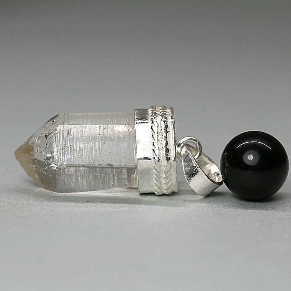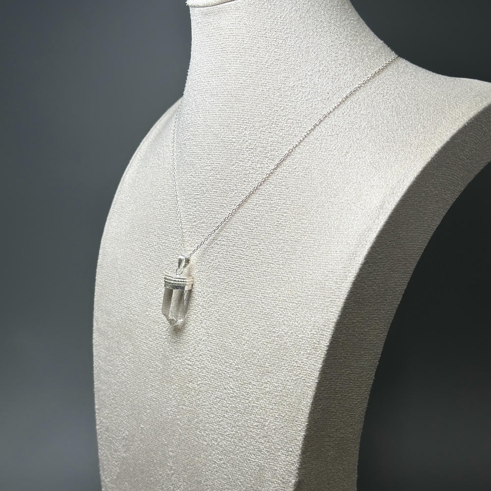 ペンダント加工は、水晶が持つ自然な表情や透明感を損なわないよう、ひとつひとつ丁寧にハンドメイドで仕立てております。