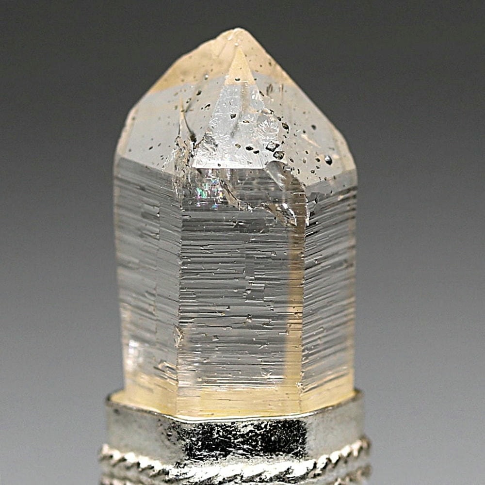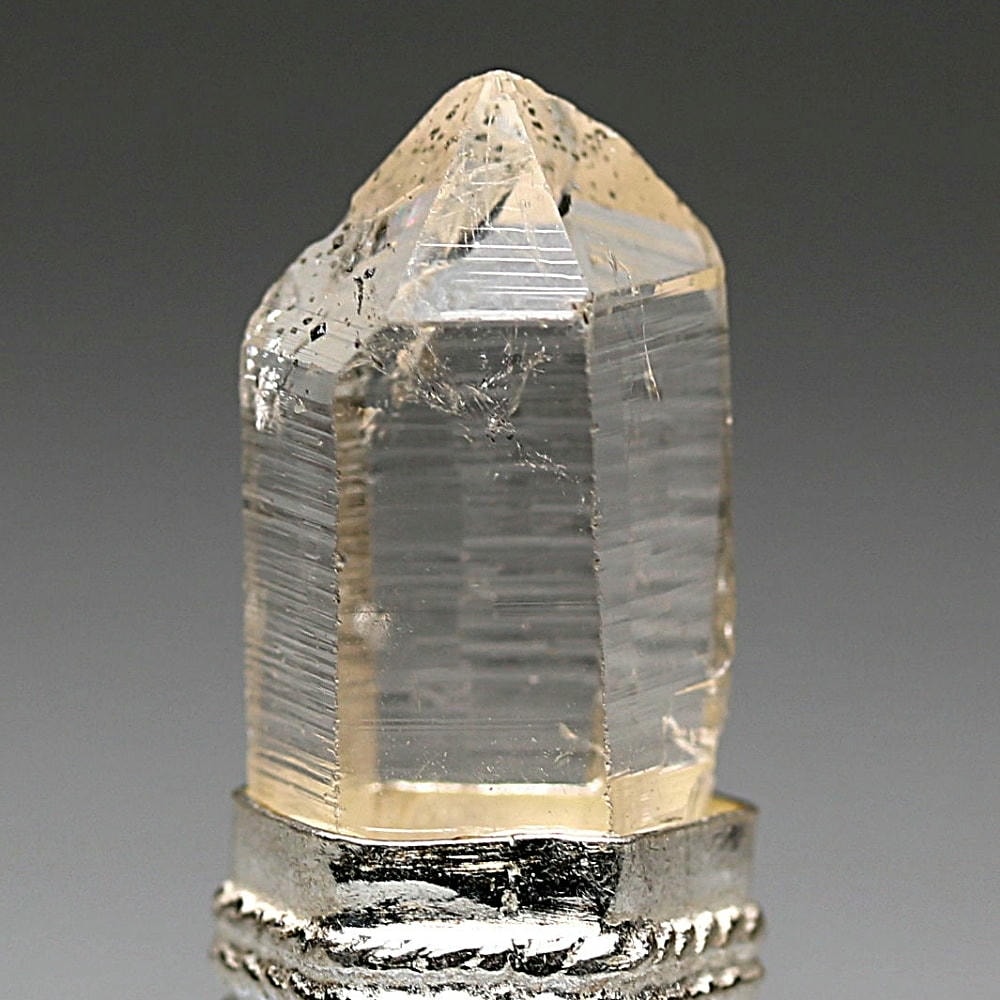 控えめなヴィンテージの風合いが全体をやさしくまとめ、澄んだ輝きと清らかな透明感を備えたマニハールヒマラヤ水晶の魅力を静かに惹き立てています。