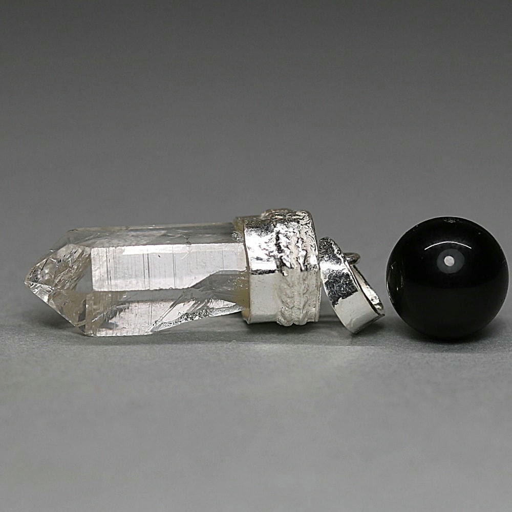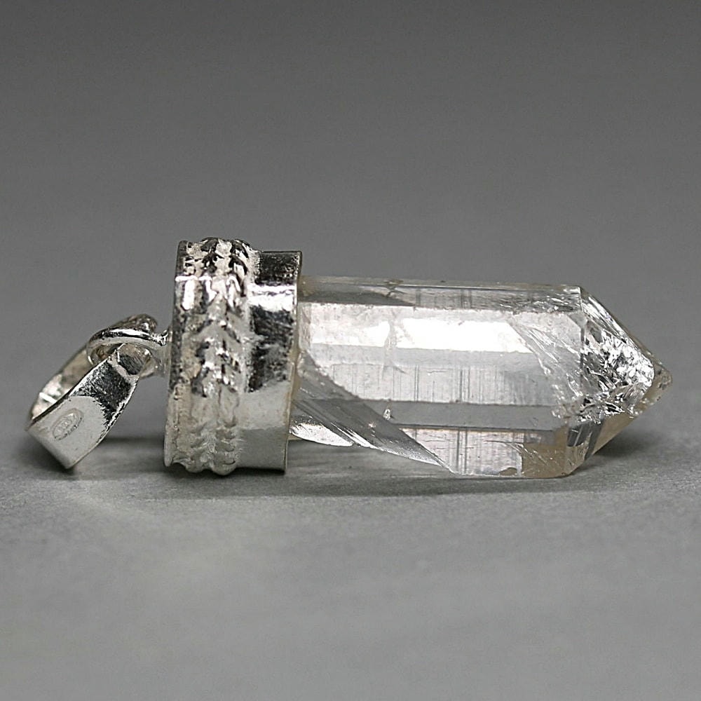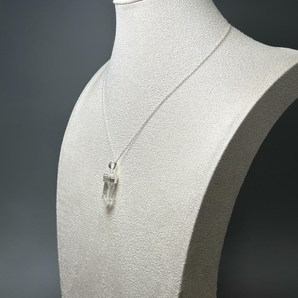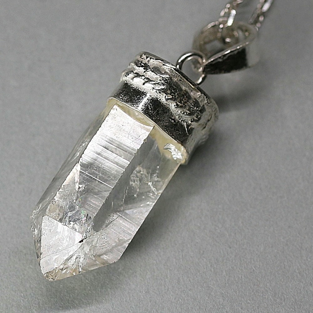 ペンダント加工は、水晶が持つ自然な表情や透明感を損なわないよう、ひとつひとつ丁寧にハンドメイドで仕立てております。