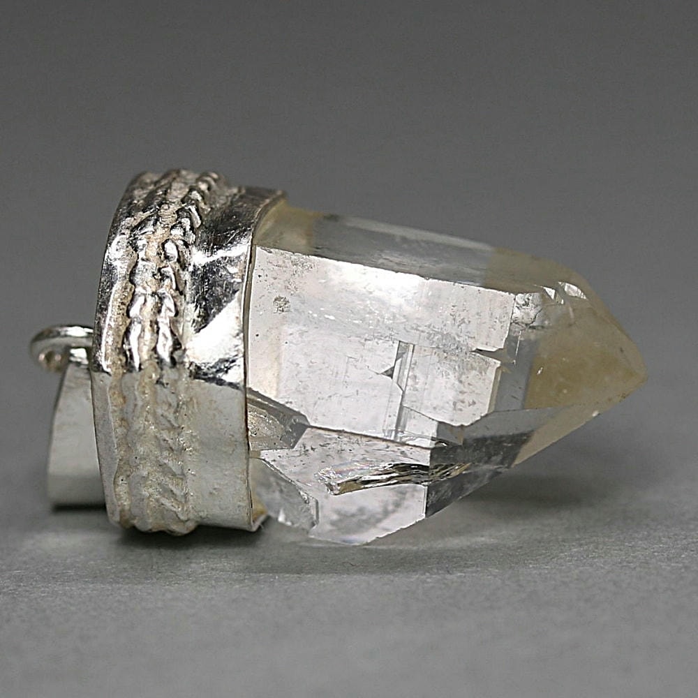 ペンダント加工は、水晶が持つ自然な表情や透明感を損なわないよう、ひとつひとつ丁寧にハンドメイドで仕立てております。