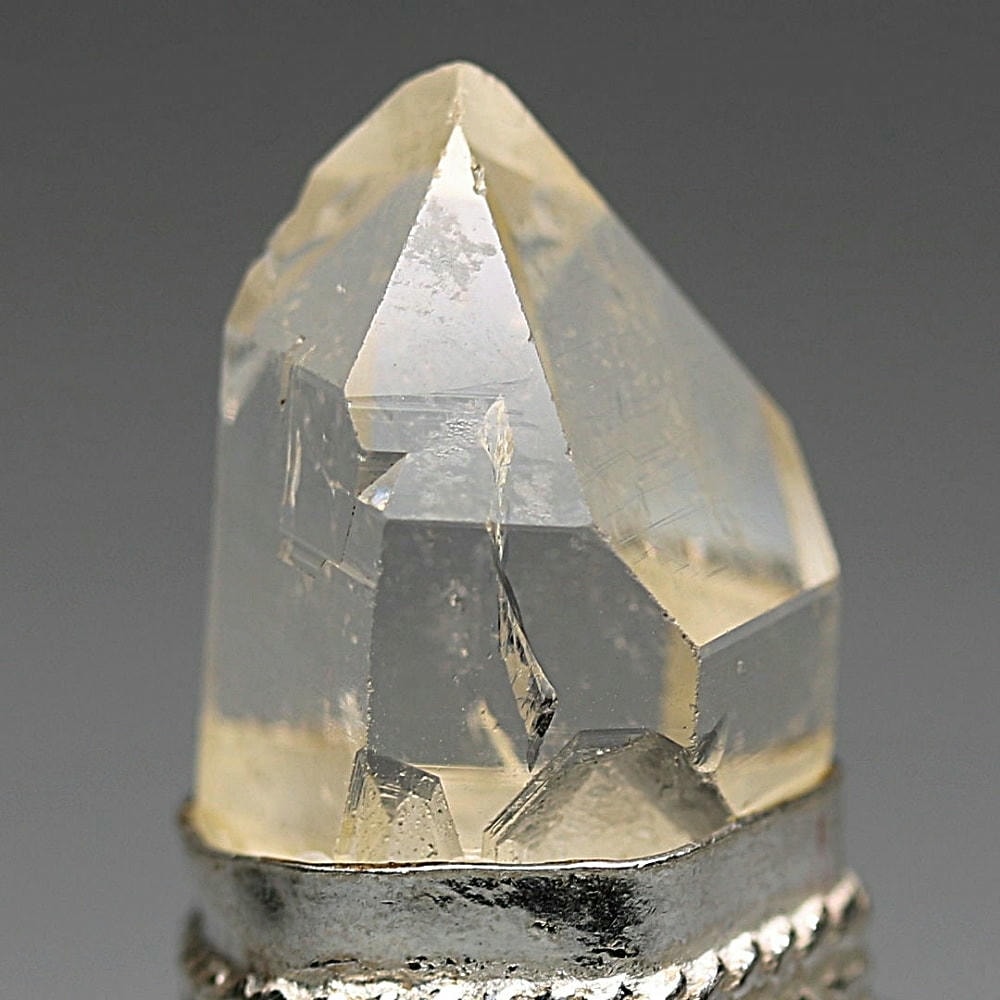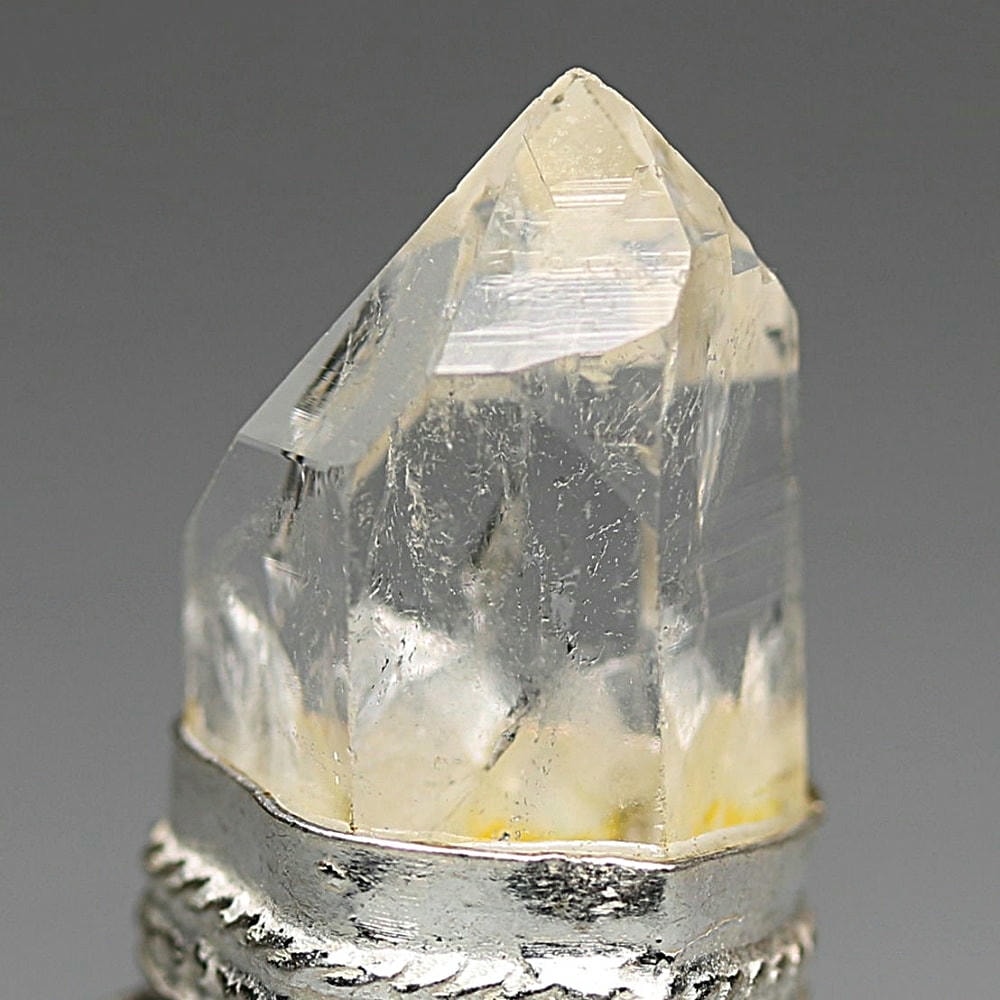 控えめなヴィンテージの風合いが全体をやさしくまとめ、澄んだ輝きと清らかな透明感を備えたマニハールヒマラヤ水晶の魅力を静かに惹き立てています。