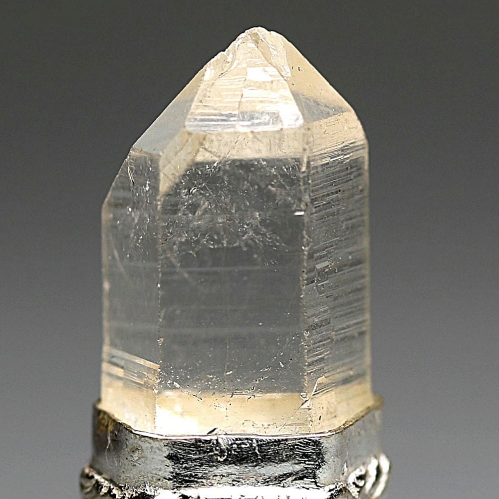 控えめなヴィンテージの風合いが全体をやさしくまとめ、澄んだ輝きと清らかな透明感を備えたマニハールヒマラヤ水晶の魅力を静かに惹き立てています。