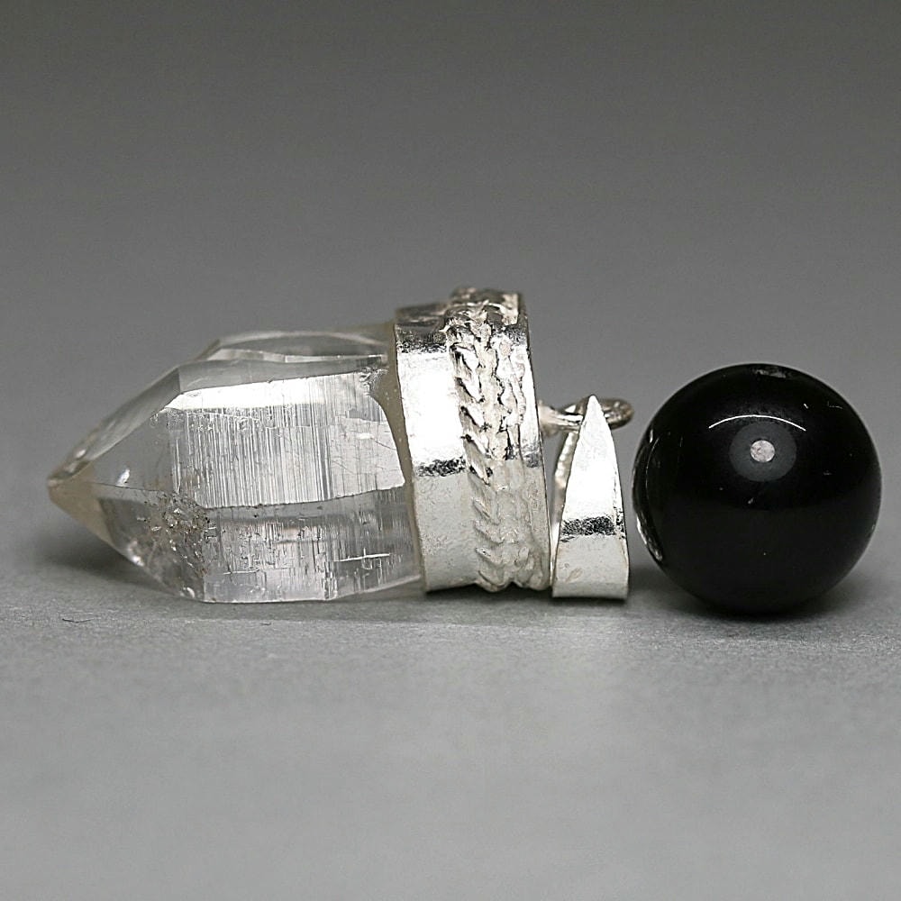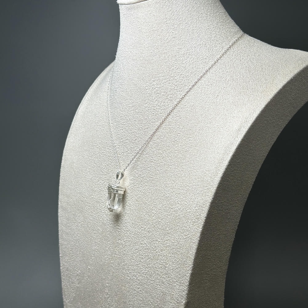 ペンダント加工は、水晶が持つ自然な表情や透明感を損なわないよう、ひとつひとつ丁寧にハンドメイドで仕立てております。
