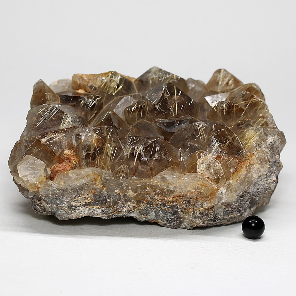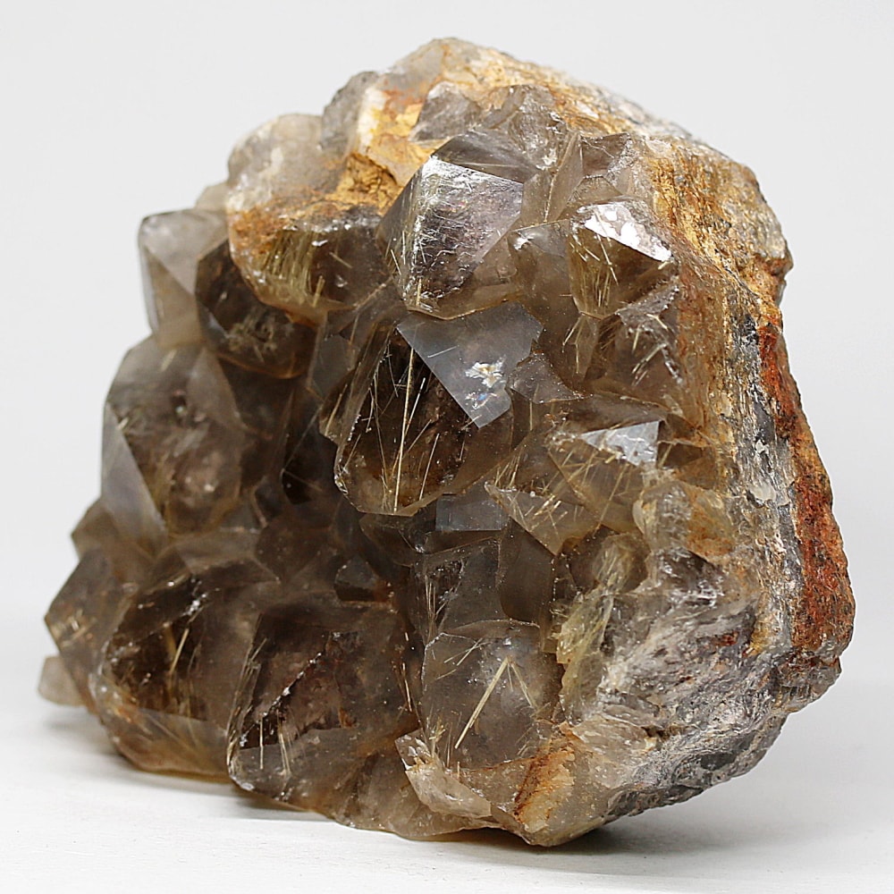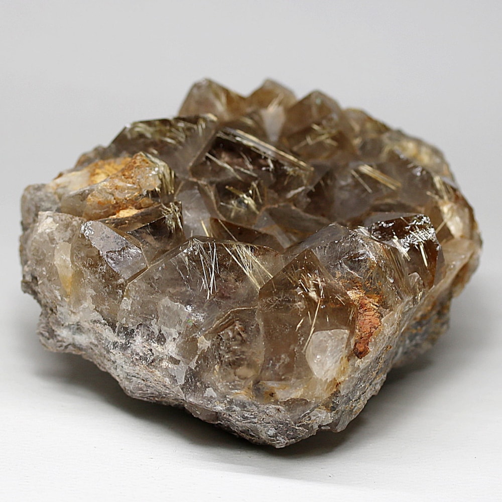 クラスター状に結晶化し、内部にルチルを内包したルチルクォーツ原石は、産出条件が限られるため流通量が非常に少なく、今回のような艶やかな結晶は未加工原石は全体の数%を下回るとも言われます。
