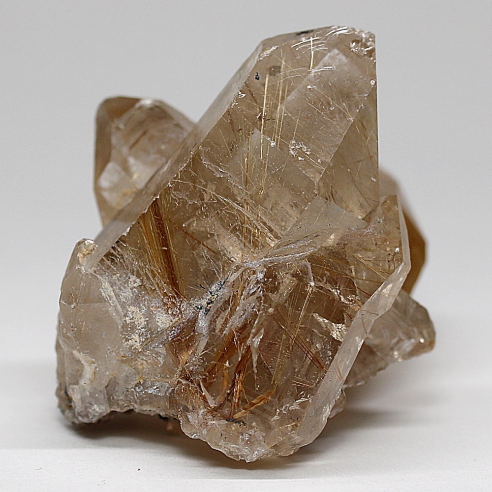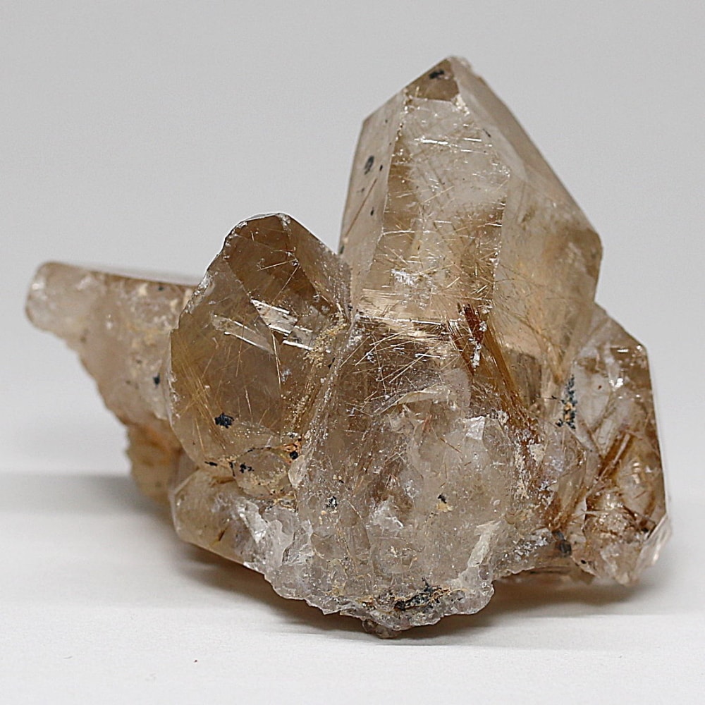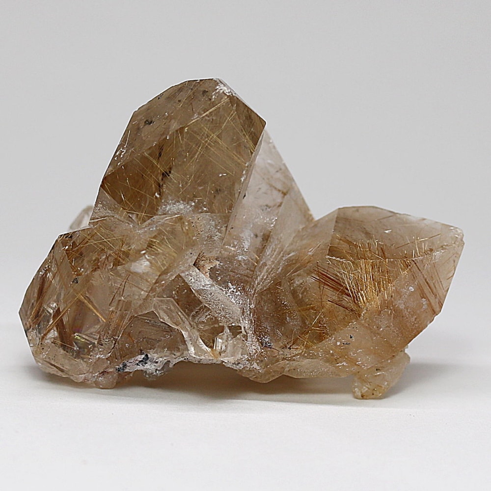 クラスター状に結晶化し、内部にルチルを内包したルチルクォーツ原石は、産出条件が限られるため流通量が非常に少なく、今回のような艶やかな結晶は未加工原石は全体の数%を下回るとも言われます。