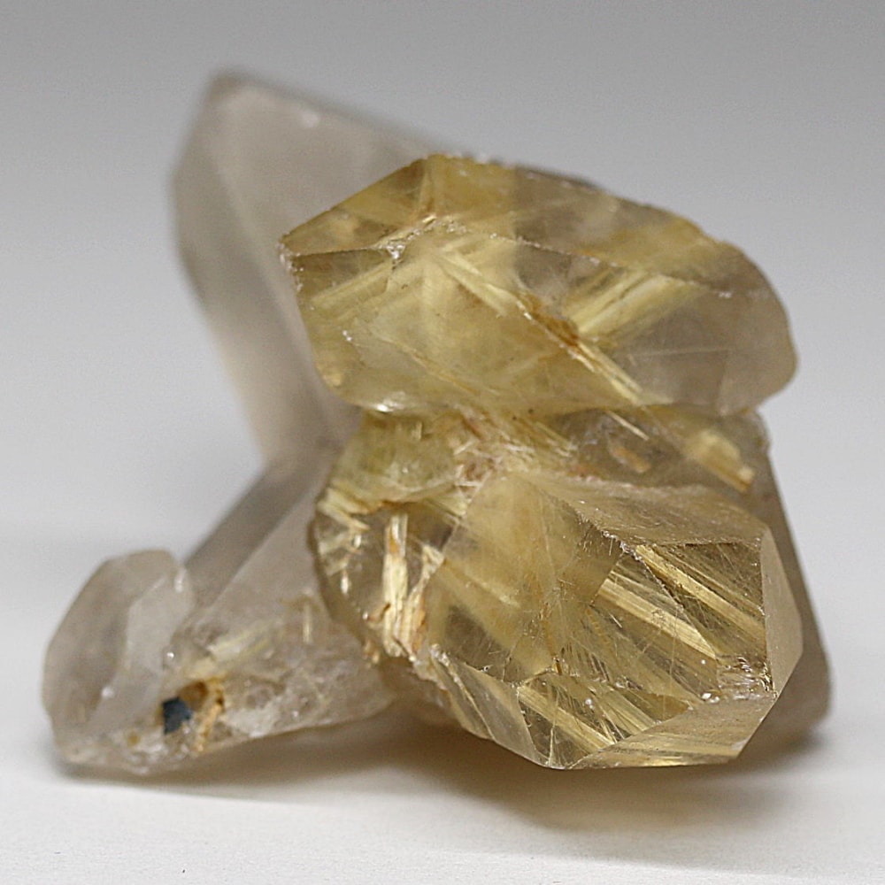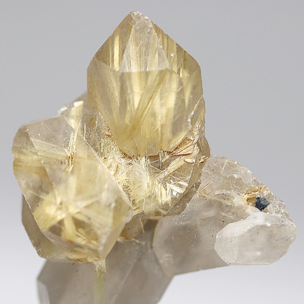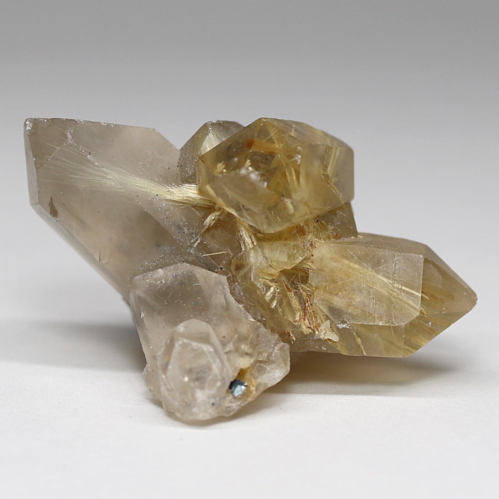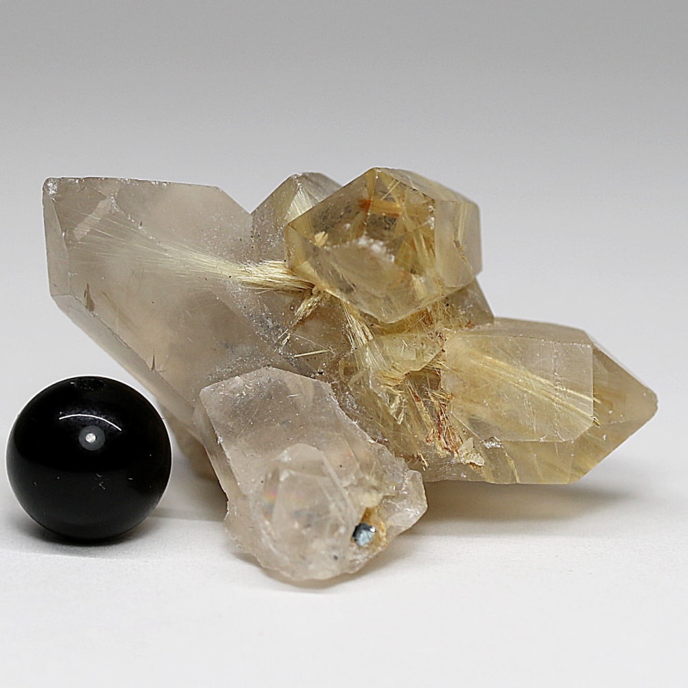 クラスター状に結晶化し、内部にルチルを内包したルチルクォーツ原石は、産出条件が限られるため流通量が非常に少なく、今回のような艶やかな結晶は未加工原石は全体の数%を下回るとも言われます。