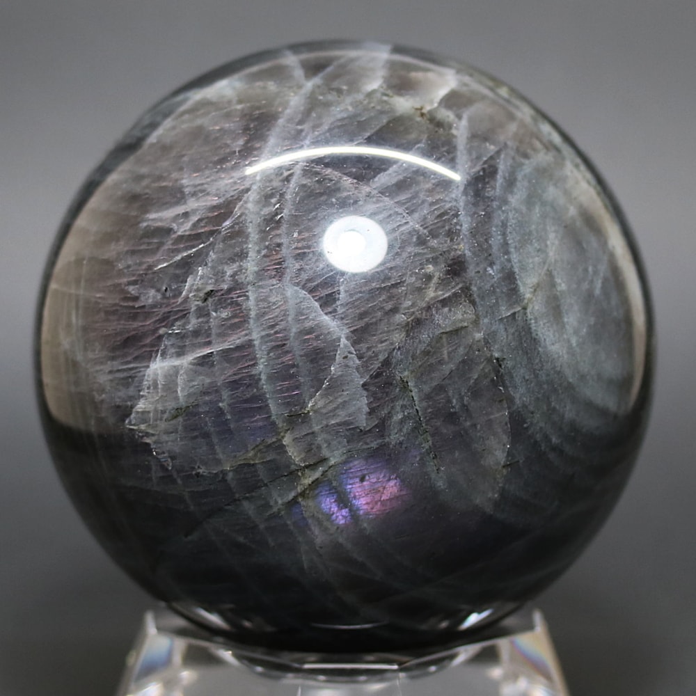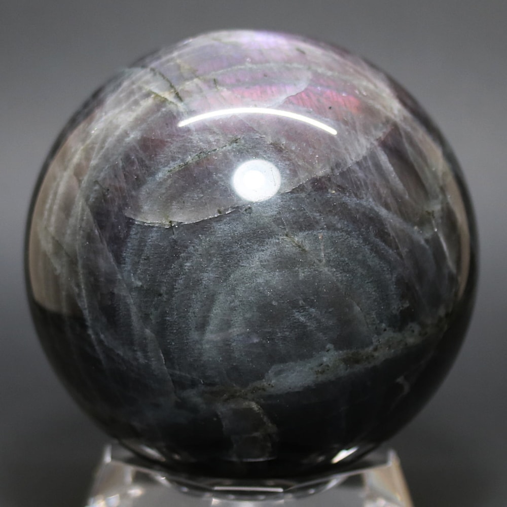 ピンクやパープルのラブラドレッセンスが現れた天然ラブラドライト原石を削り磨き上げた、ラブラドライト丸玉(スフィア)でございます。