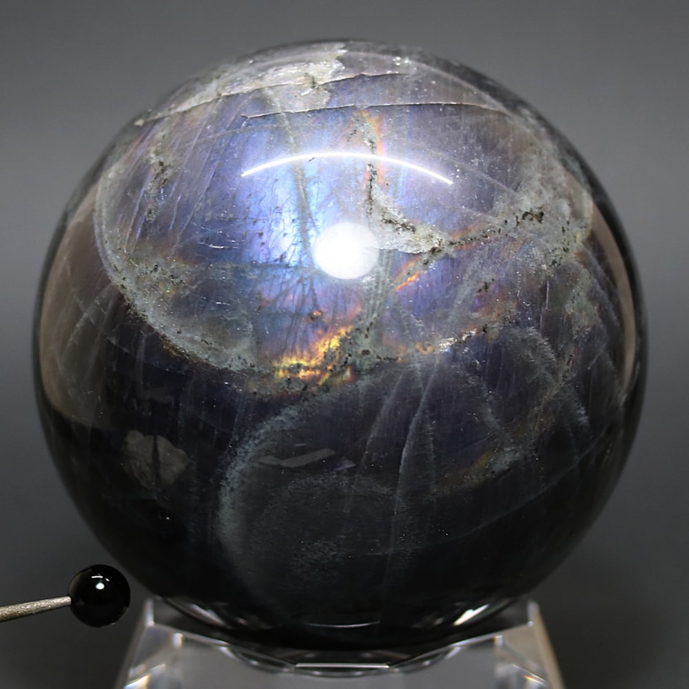 ピンクパープルラブラドライト丸玉/スフィア(直径約104mm希少大玉!)¥98,000クイックガイド送料