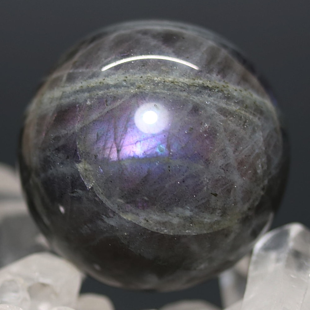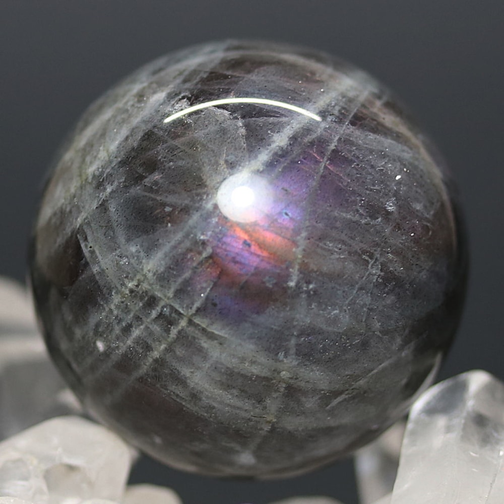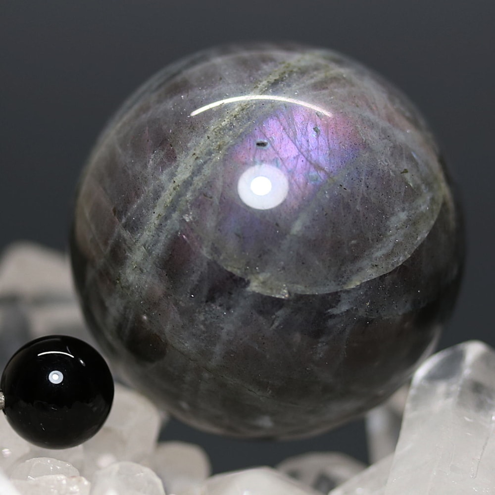ピンクやパープルのラブラドレッセンスが現れた天然ラブラドライト原石を削り磨き上げた、ラブラドライト丸玉(スフィア)でございます。