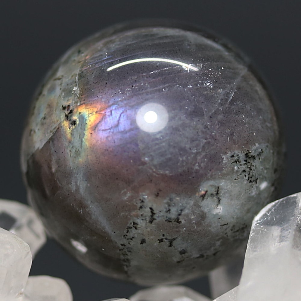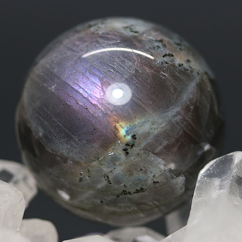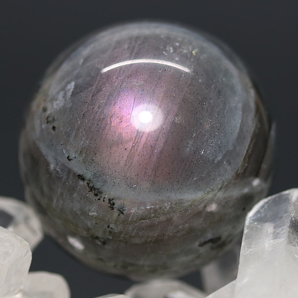 ピンクやパープルのラブラドレッセンスが現れた天然ラブラドライト原石を削り磨き上げた、ラブラドライト丸玉(スフィア)でございます。