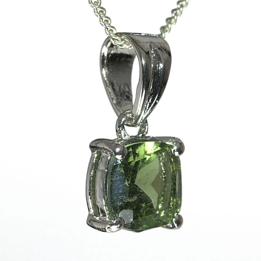 天然モルダバイトジュエリーカットペンダントトップ(シルバー925・スクエア/石高約7.3mm)