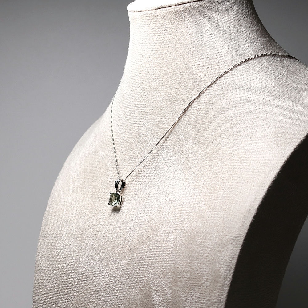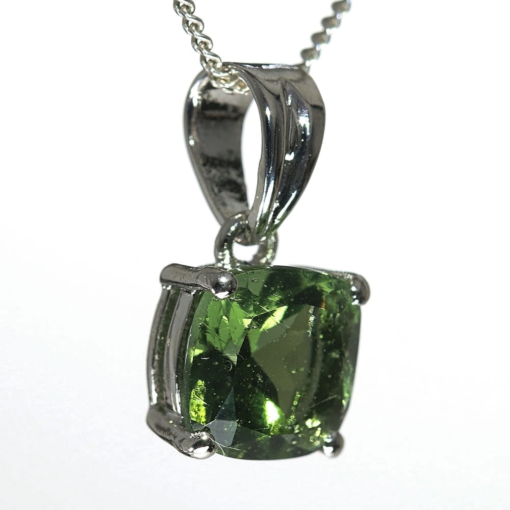 天然モルダバイトジュエリーカットペンダントトップ(シルバー925・スクエア/石高約8.0mm)