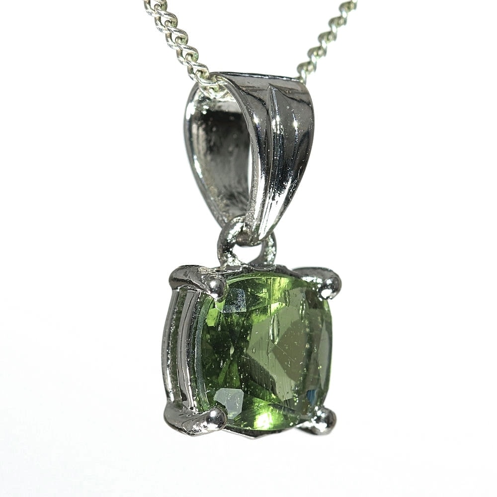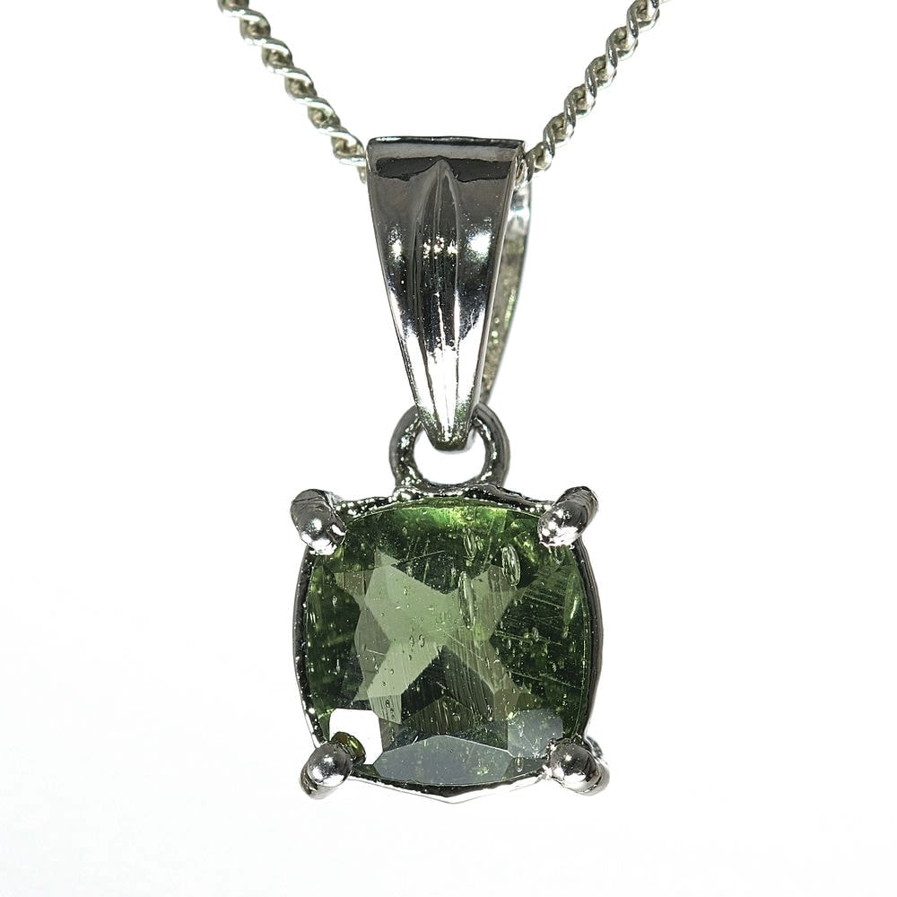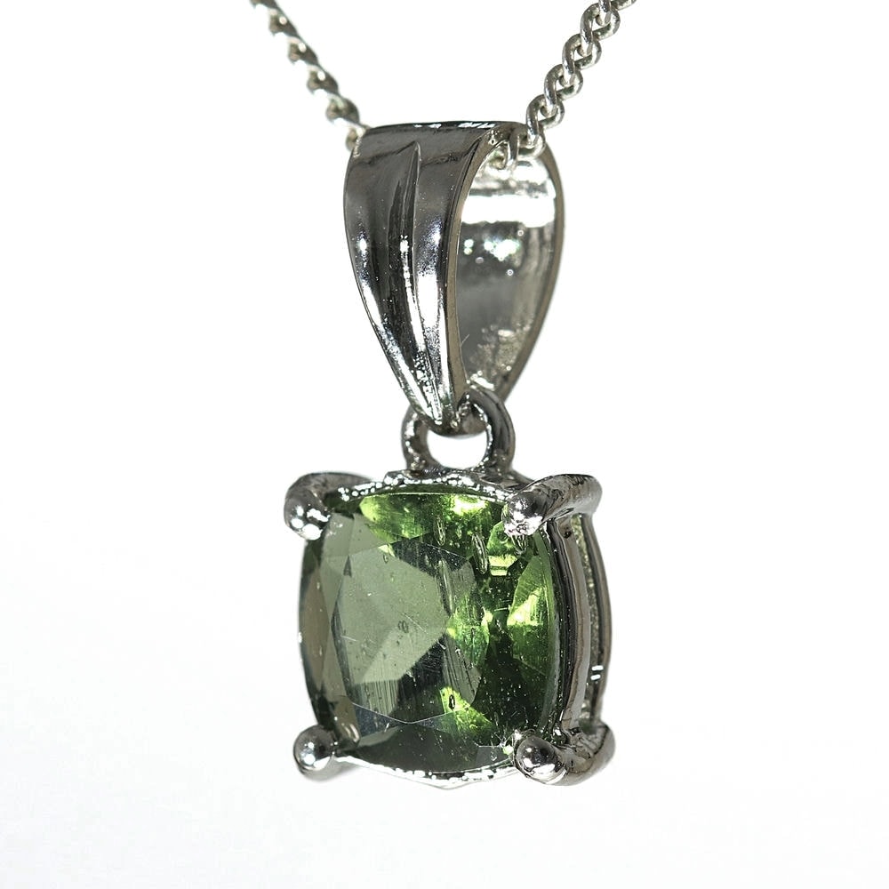 天然モルダバイトジュエリーカットペンダントトップ(シルバー925・スクエア/石高約7.0mm)