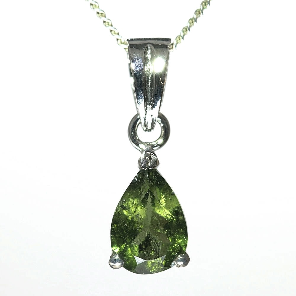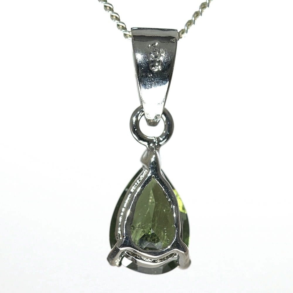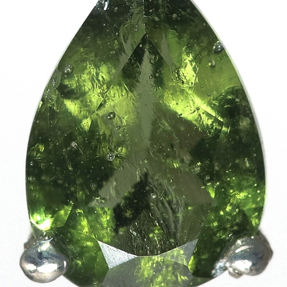 天然モルダバイトジュエリーカットペンダントトップ(シルバー925・ペアシェイプ/石高約8.3mm)