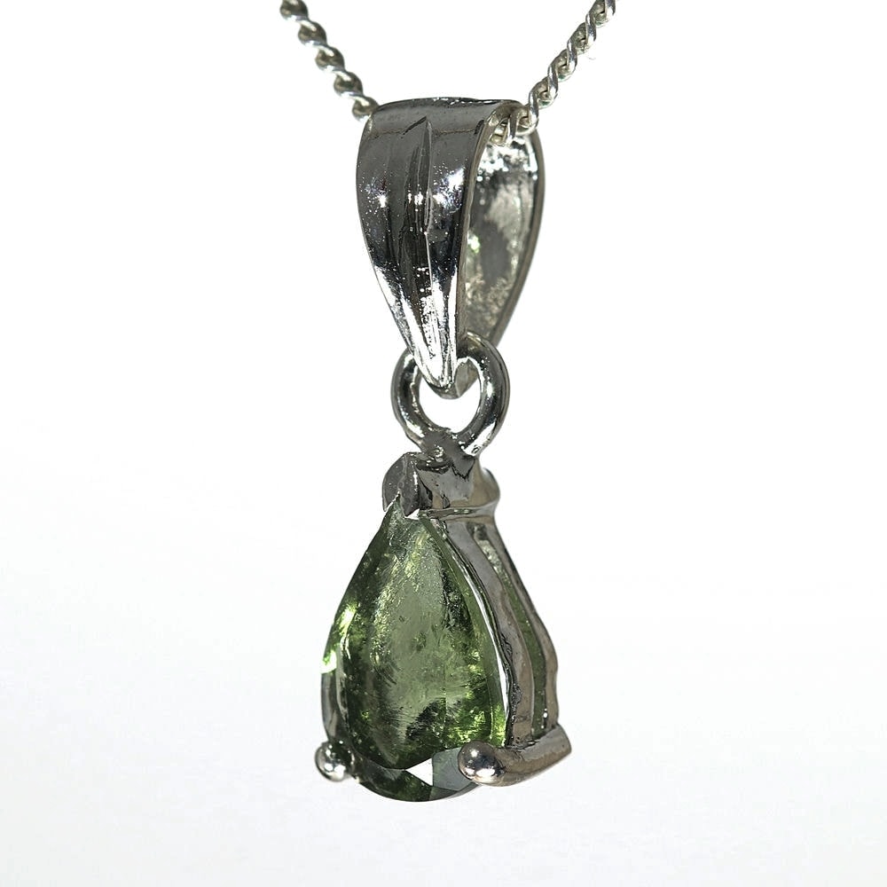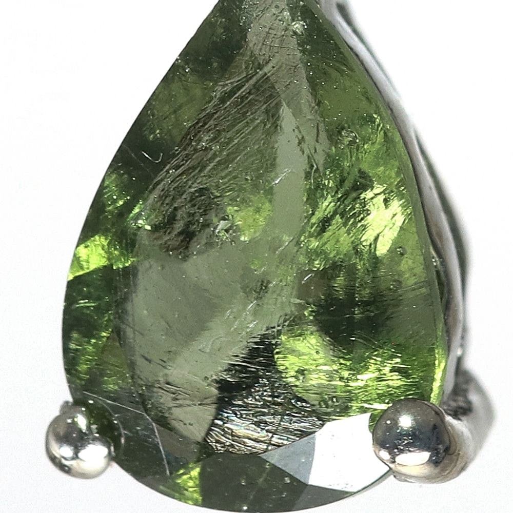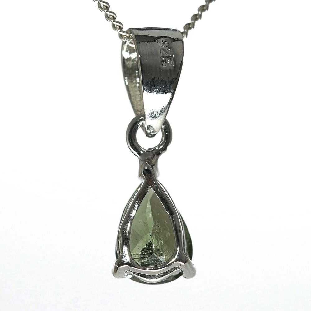 天然モルダバイトジュエリーカットペンダントトップ(シルバー925・ペアシェイプ/石高約8.1mm)