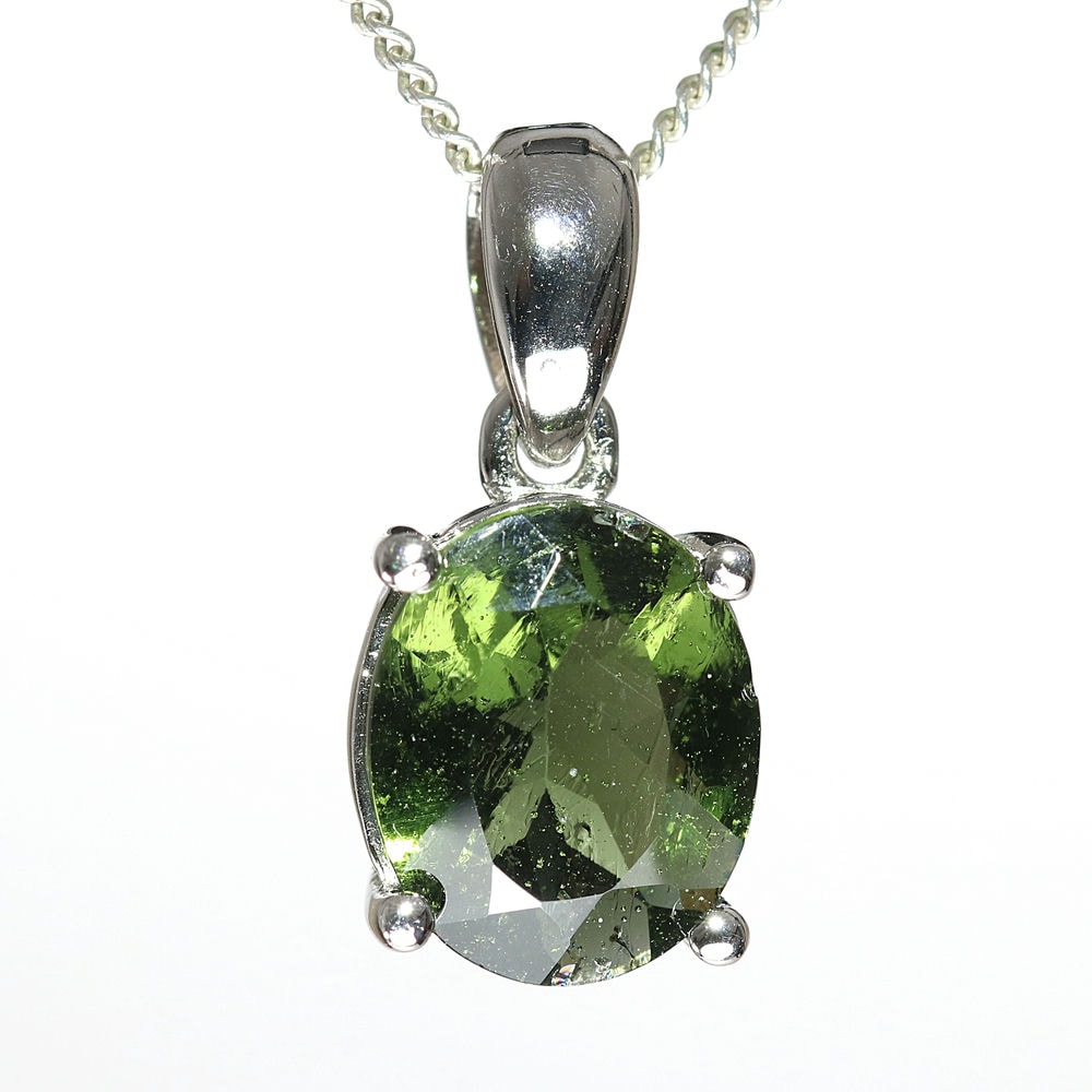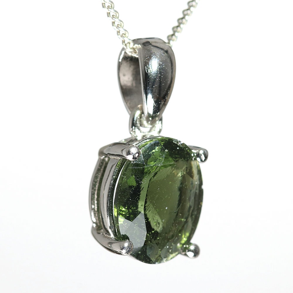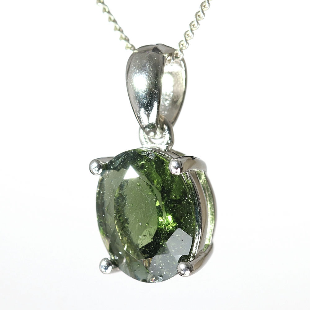 天然モルダバイトジュエリーカットペンダントトップ(シルバー925・オーバル/石高約10.6mm)