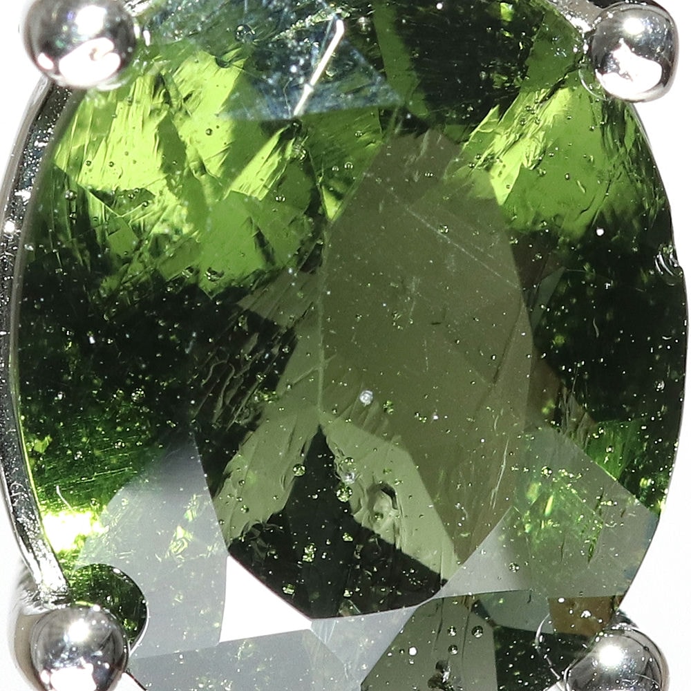 使用しているモルダバイトルースは発色も濃く、モルダバイト(テクタイト)独特の内包も見られる良質なルースを使用しています。
