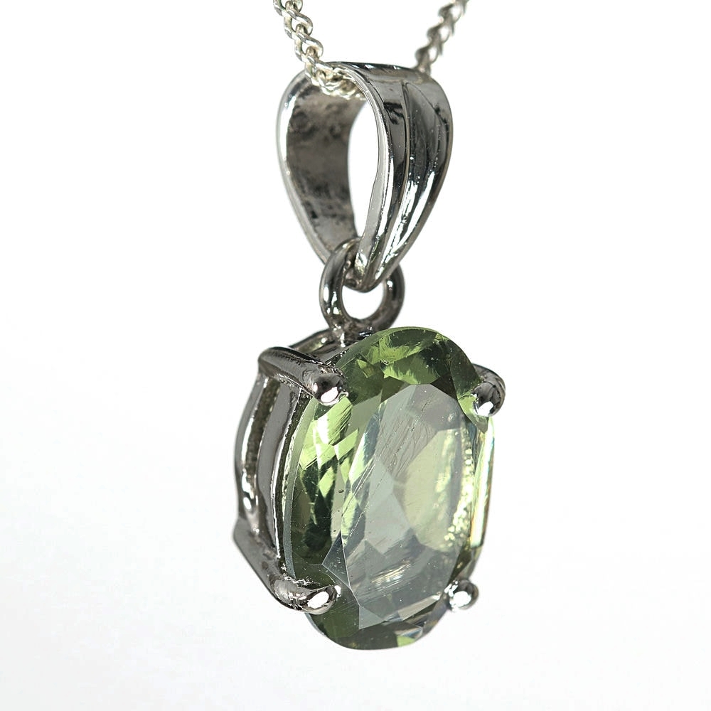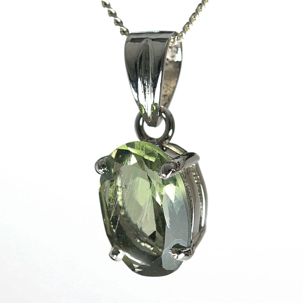 天然モルダバイトジュエリーカットペンダントトップ(シルバー925・オーバル/石高約11.0mm)