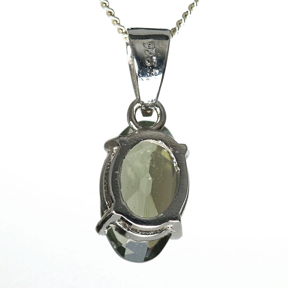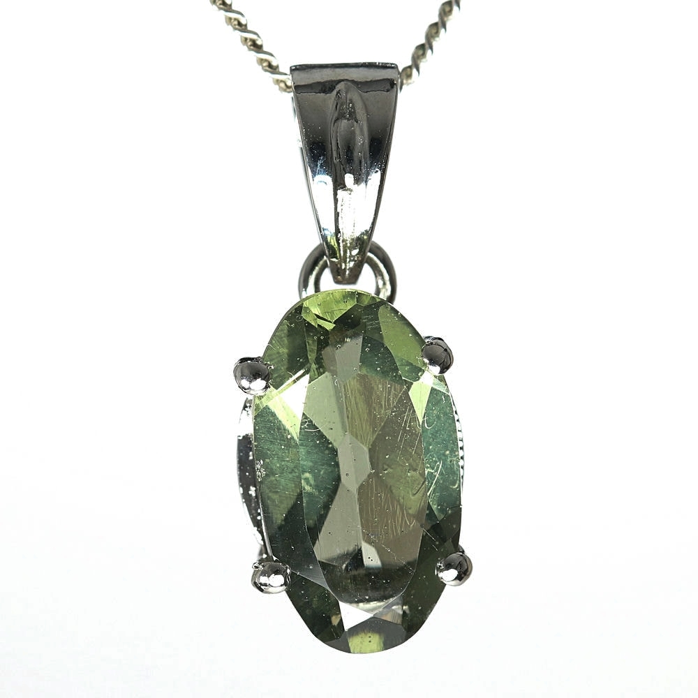 天然モルダバイトジュエリーカットペンダントトップ(シルバー925・オーバル/石高約12.6mm)