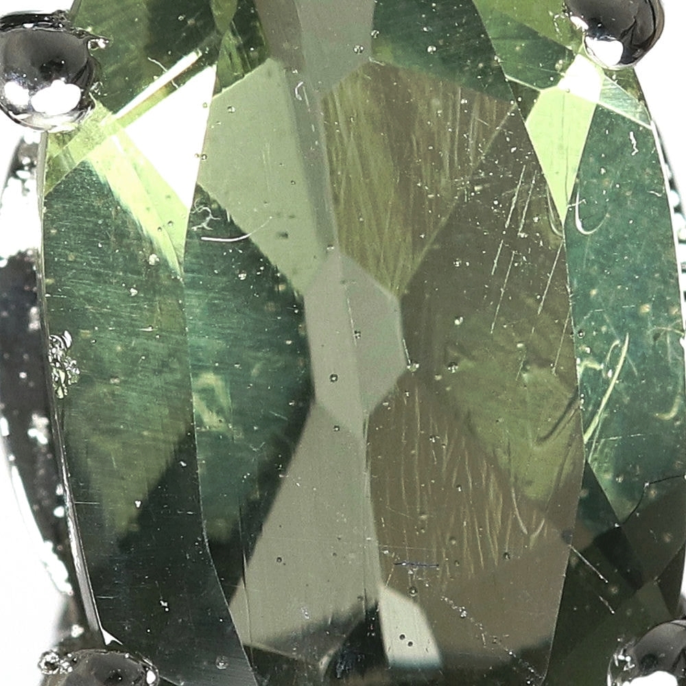 使用しているモルダバイトルースは発色も濃く、モルダバイト(テクタイト)独特の内包も見られる良質なルースを使用しています。