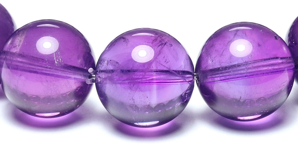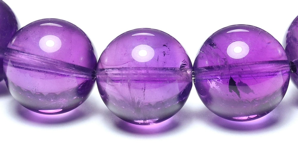 アメジストブレスレットはたくさん流通している天然石ですが、これほどまでに「発色が濃く」「クラックが少なく」「透明度が高い」個体に出会える機会はそう多くありません。