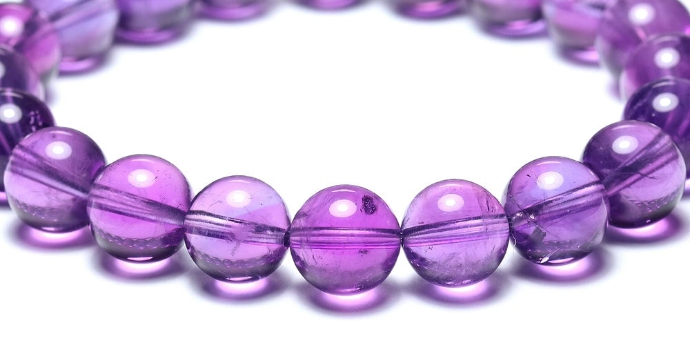 アメジストブレスレットはたくさん流通している天然石ですが、これほどまでに「発色が濃く」「クラックが少なく」「透明度が高い」個体に出会える機会はそう多くありません。