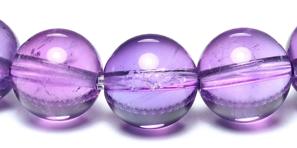 アメジストブレスレットはたくさん流通している天然石ですが、これほどまでに「発色が濃く」「クラックが少なく」「透明度が高い」個体に出会える機会はそう多くありません。