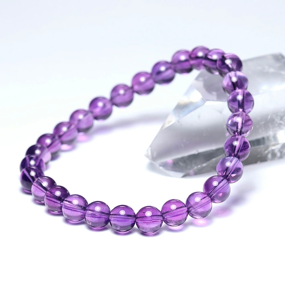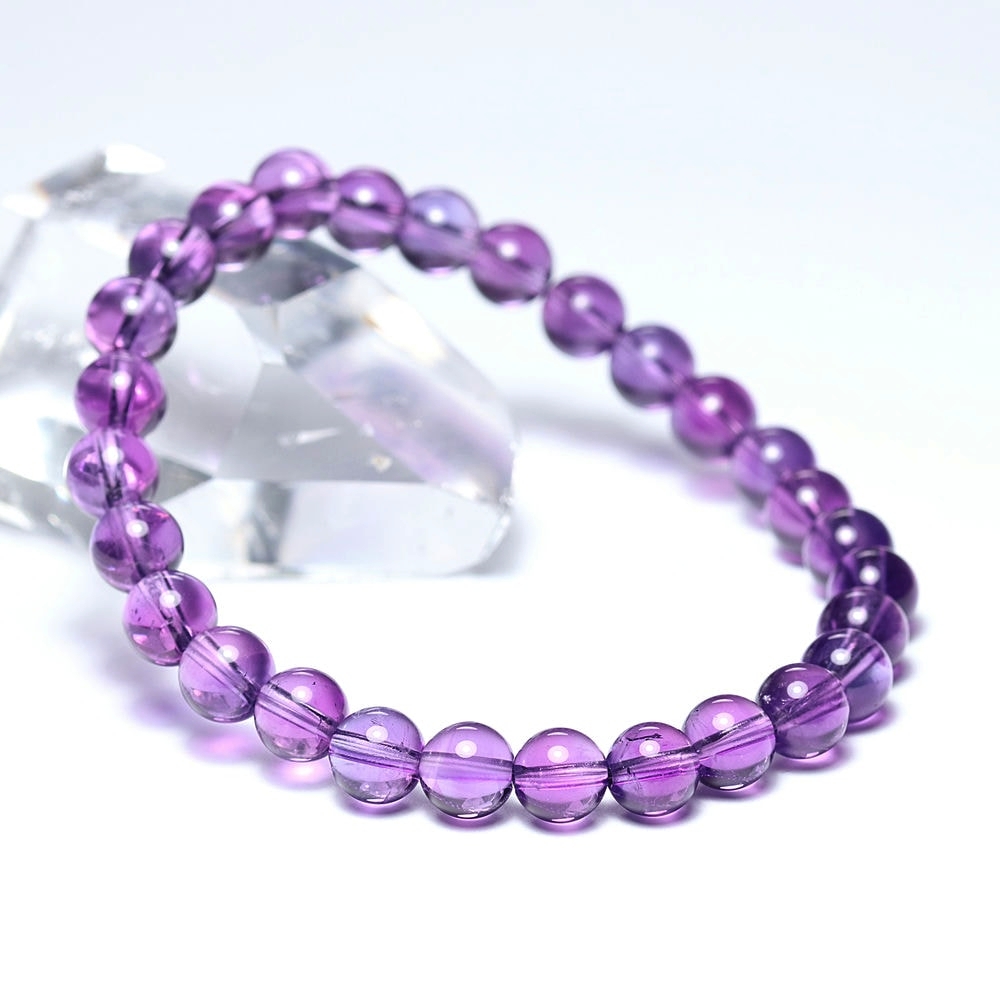 アメジストブレスレットはたくさん流通している天然石ですが、これほどまでに「発色が濃く」「クラックが少なく」「透明度が高い」個体に出会える機会はそう多くありません。