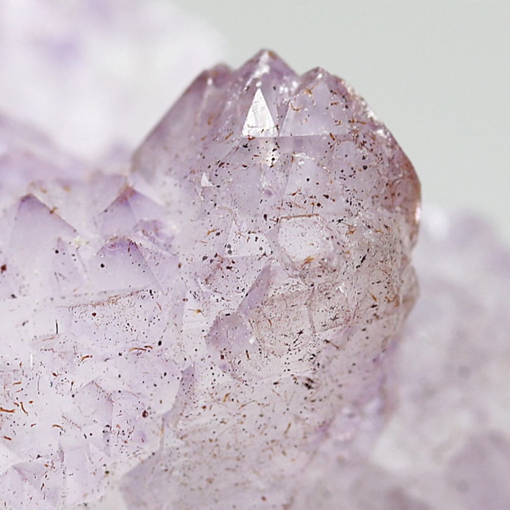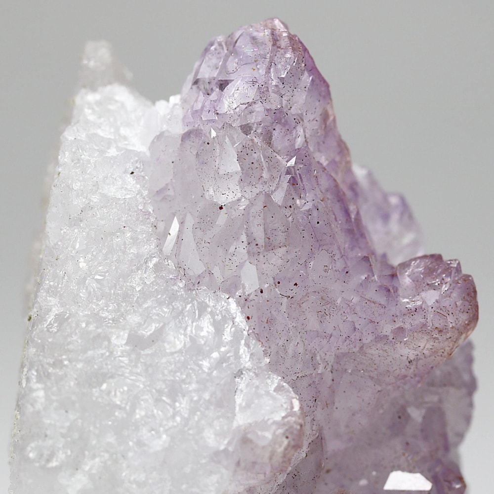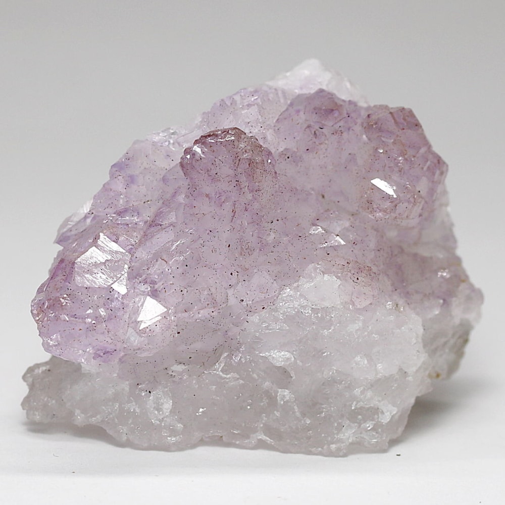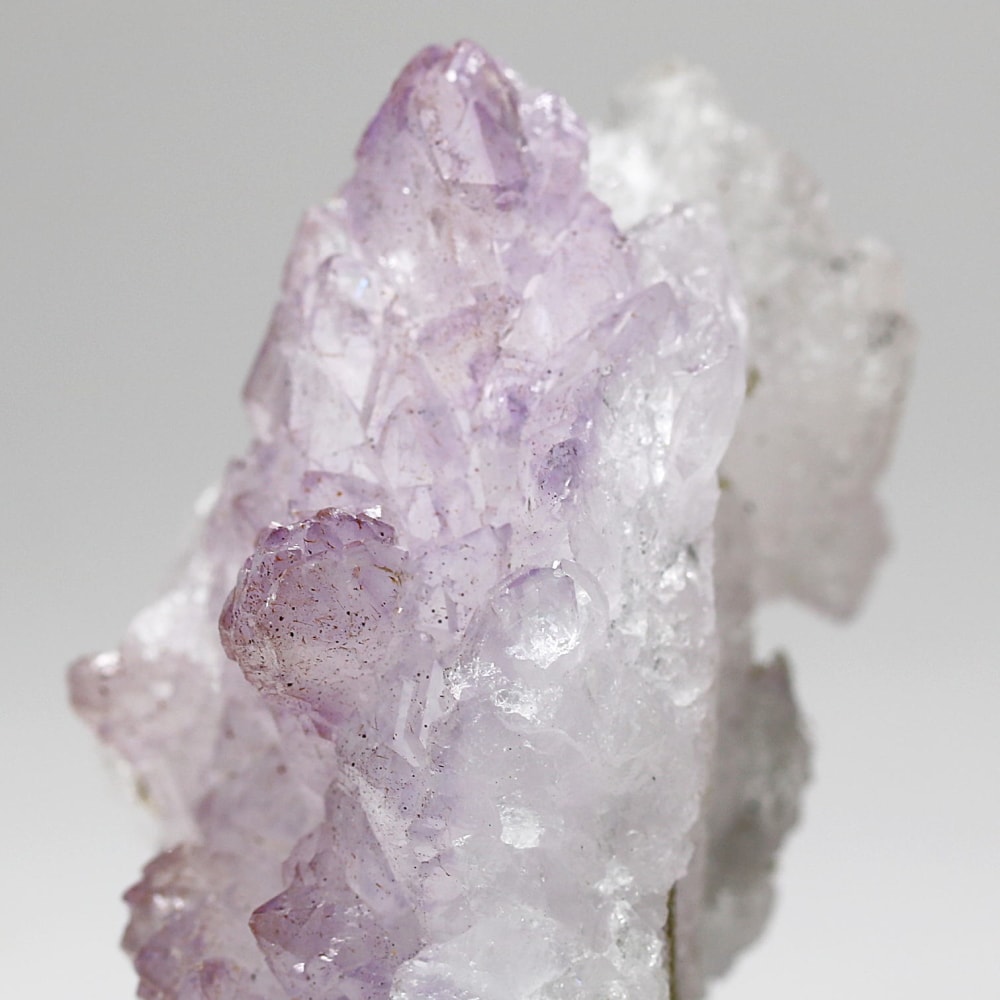 さらに、こちらのクラスターにはレピドクロサイトがインクルージョン。紫色の結晶に赤みを帯びた斑点状の模様が、鉱物の奥深さを感じさせる表情を添えています。