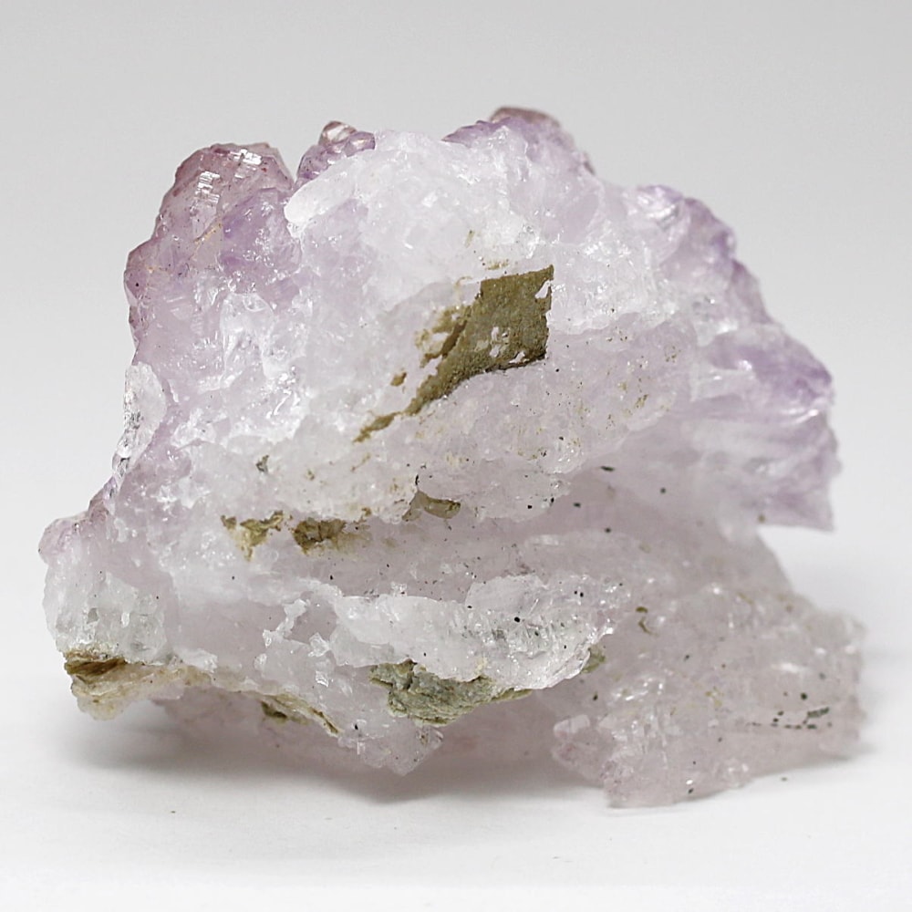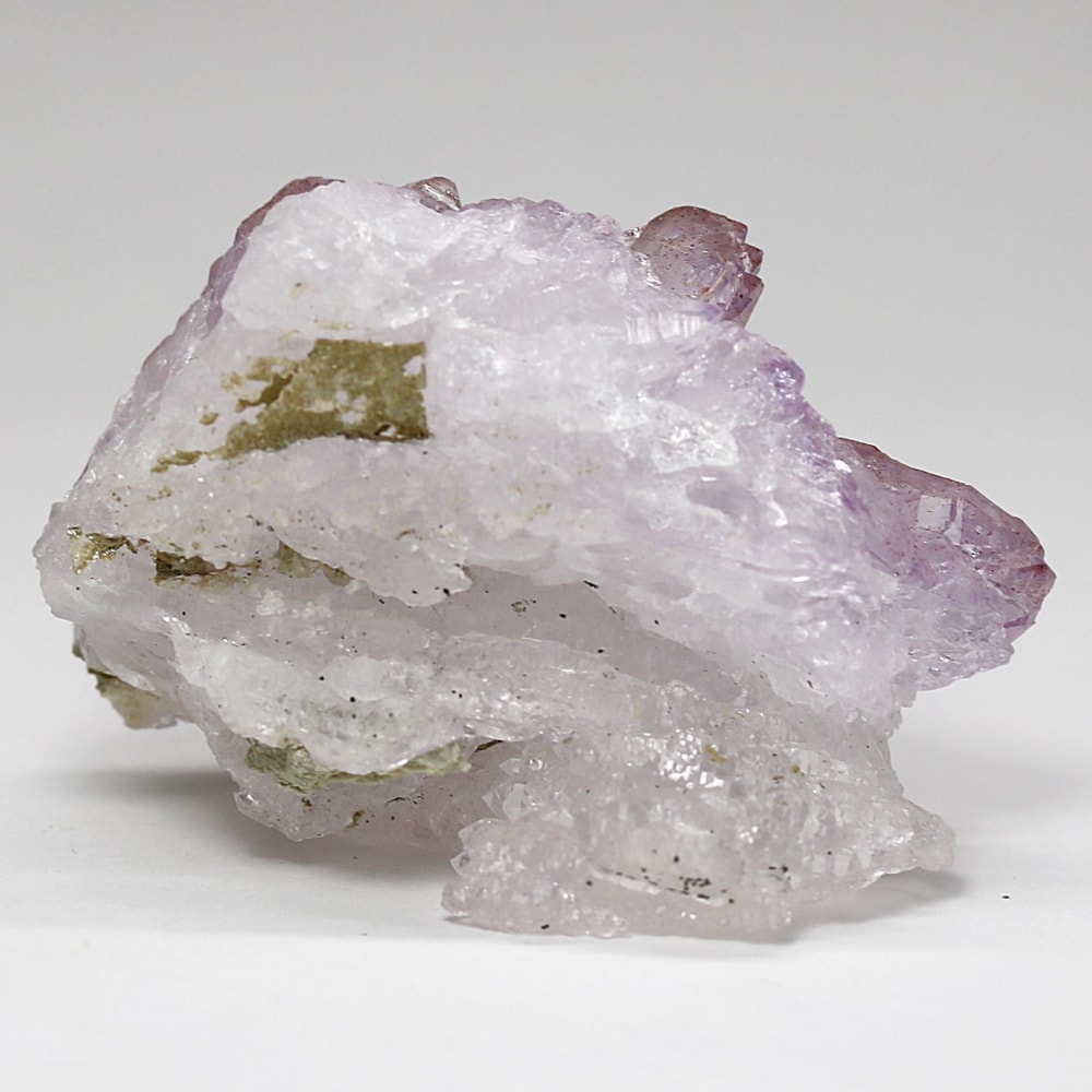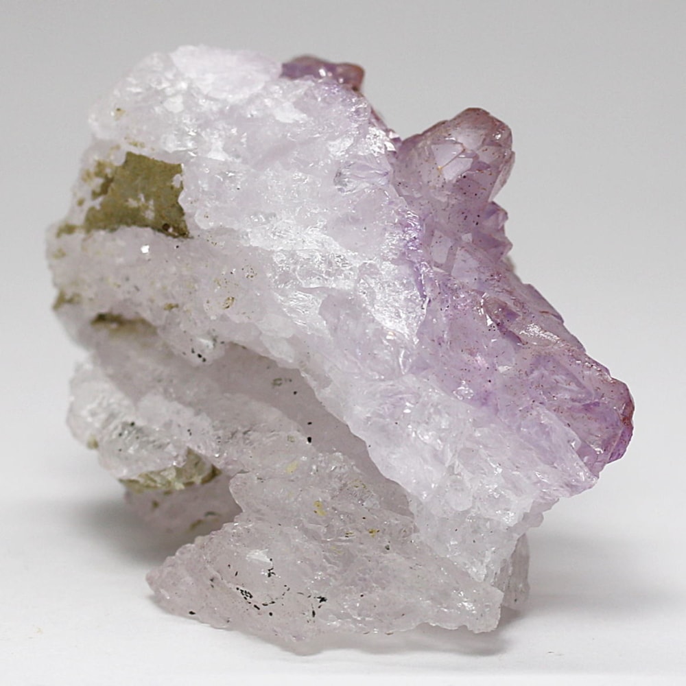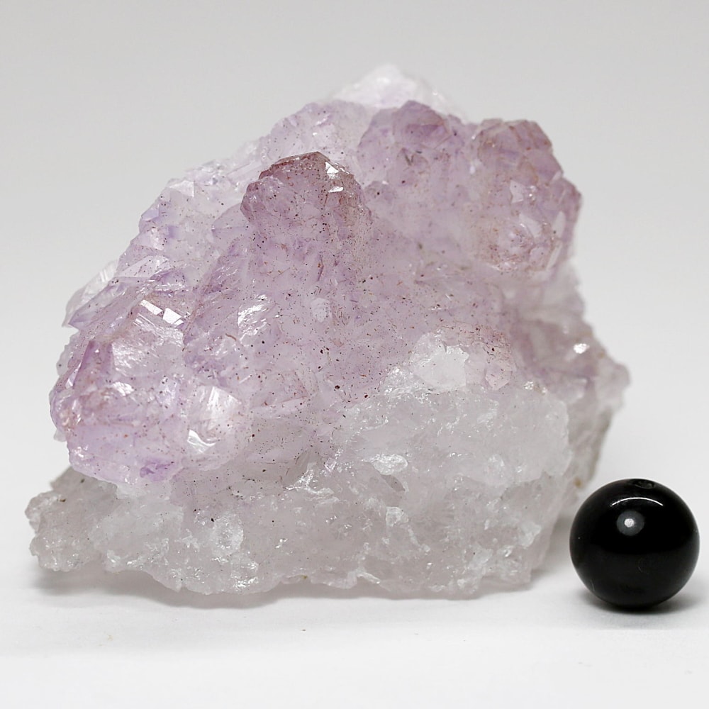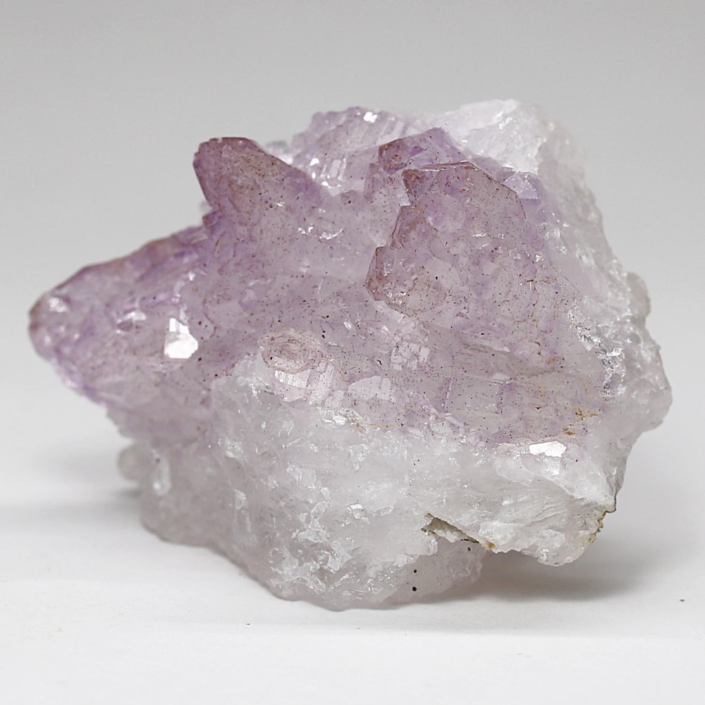 さらに、こちらのクラスターにはレピドクロサイトがインクルージョン。紫色の結晶に赤みを帯びた斑点状の模様が、鉱物の奥深さを感じさせる表情を添えています。