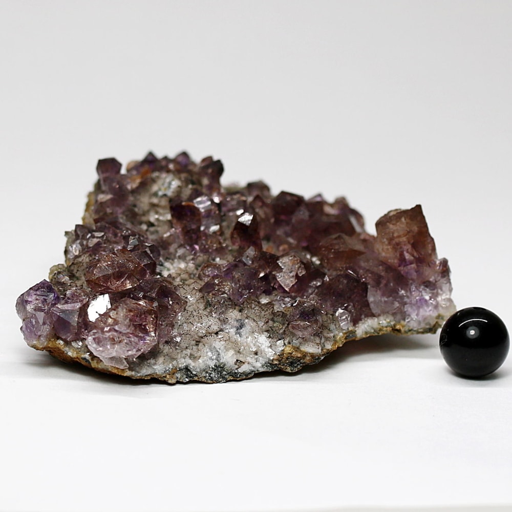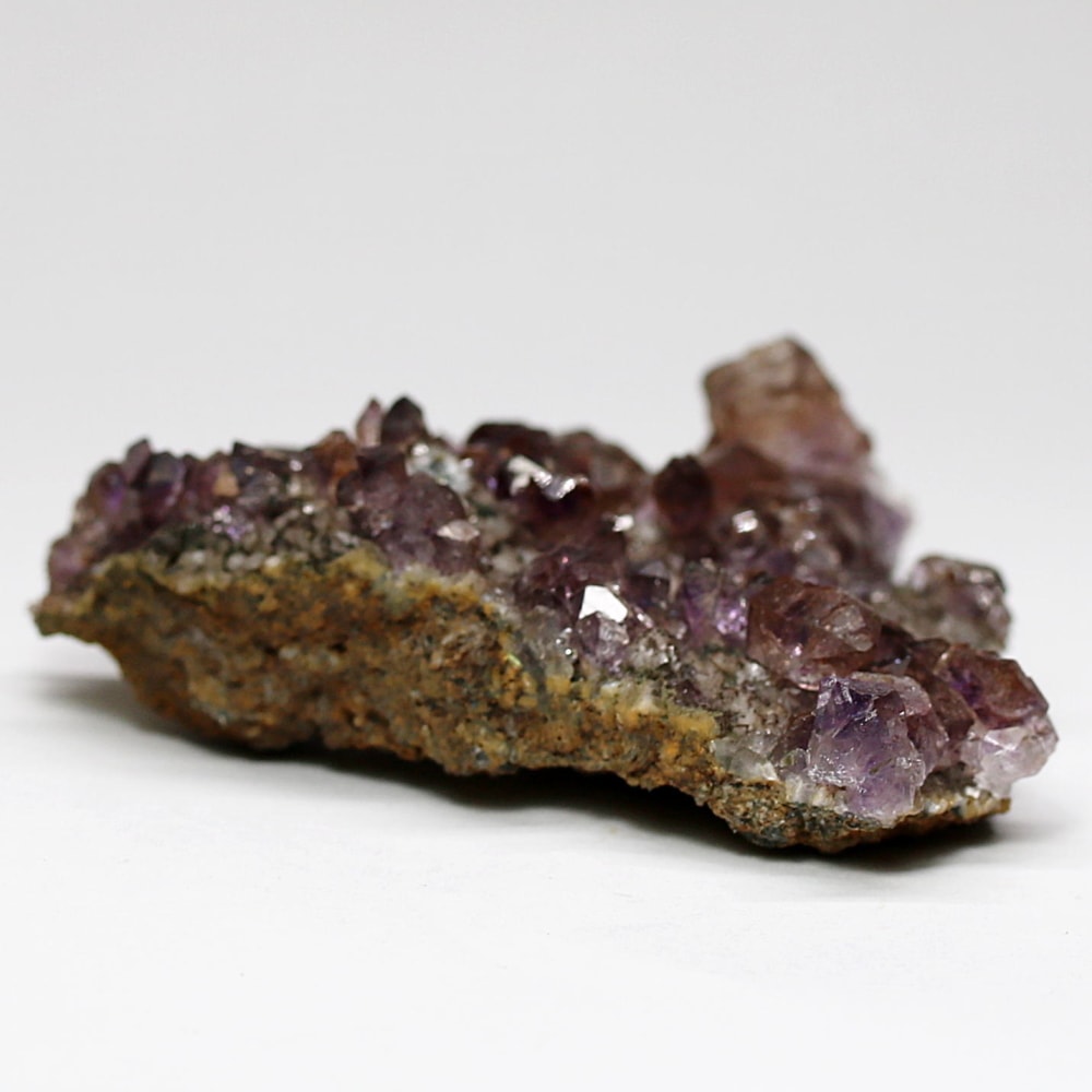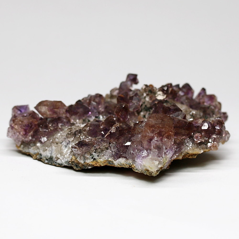 ご覧のお品は、インド南部のタミルナードゥ州に位置するカルール(Karur)より産出されたアメジストエレスチャルクラスターでございます。