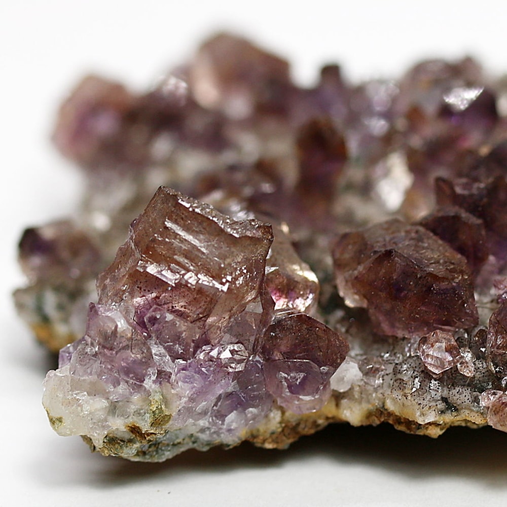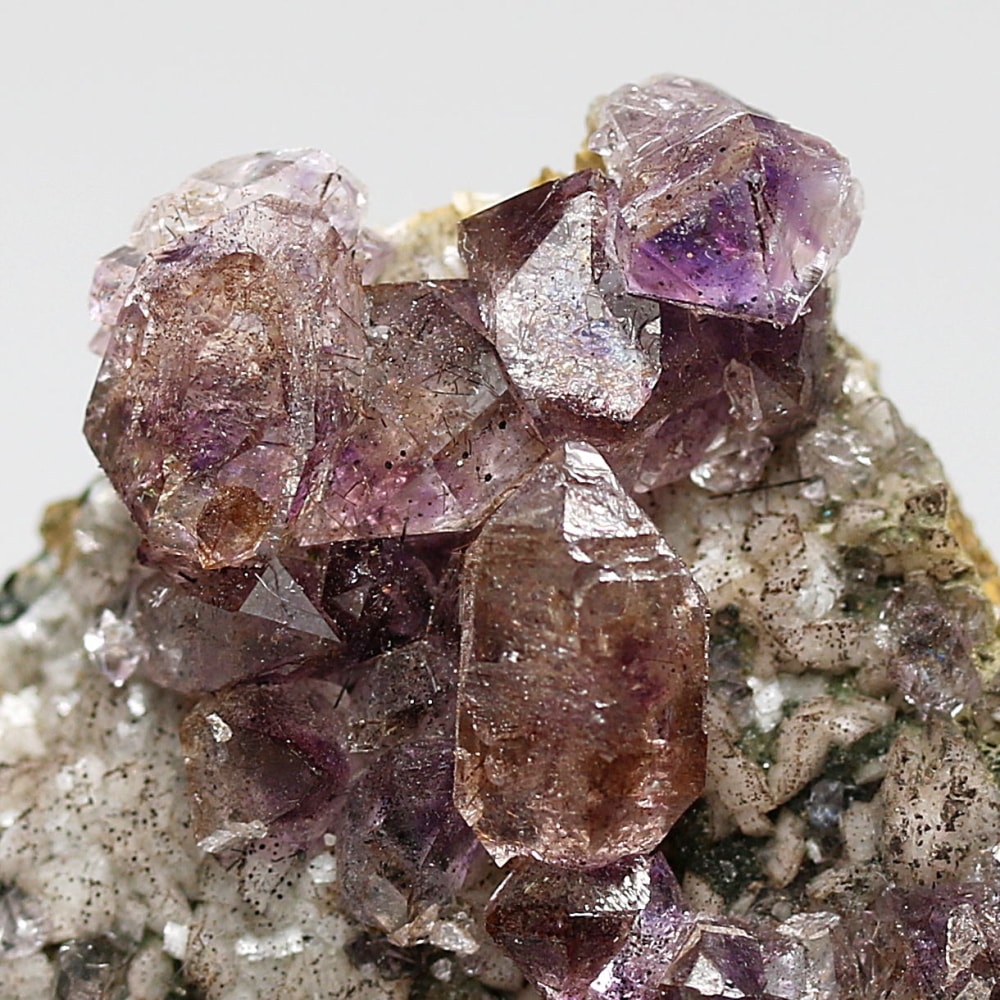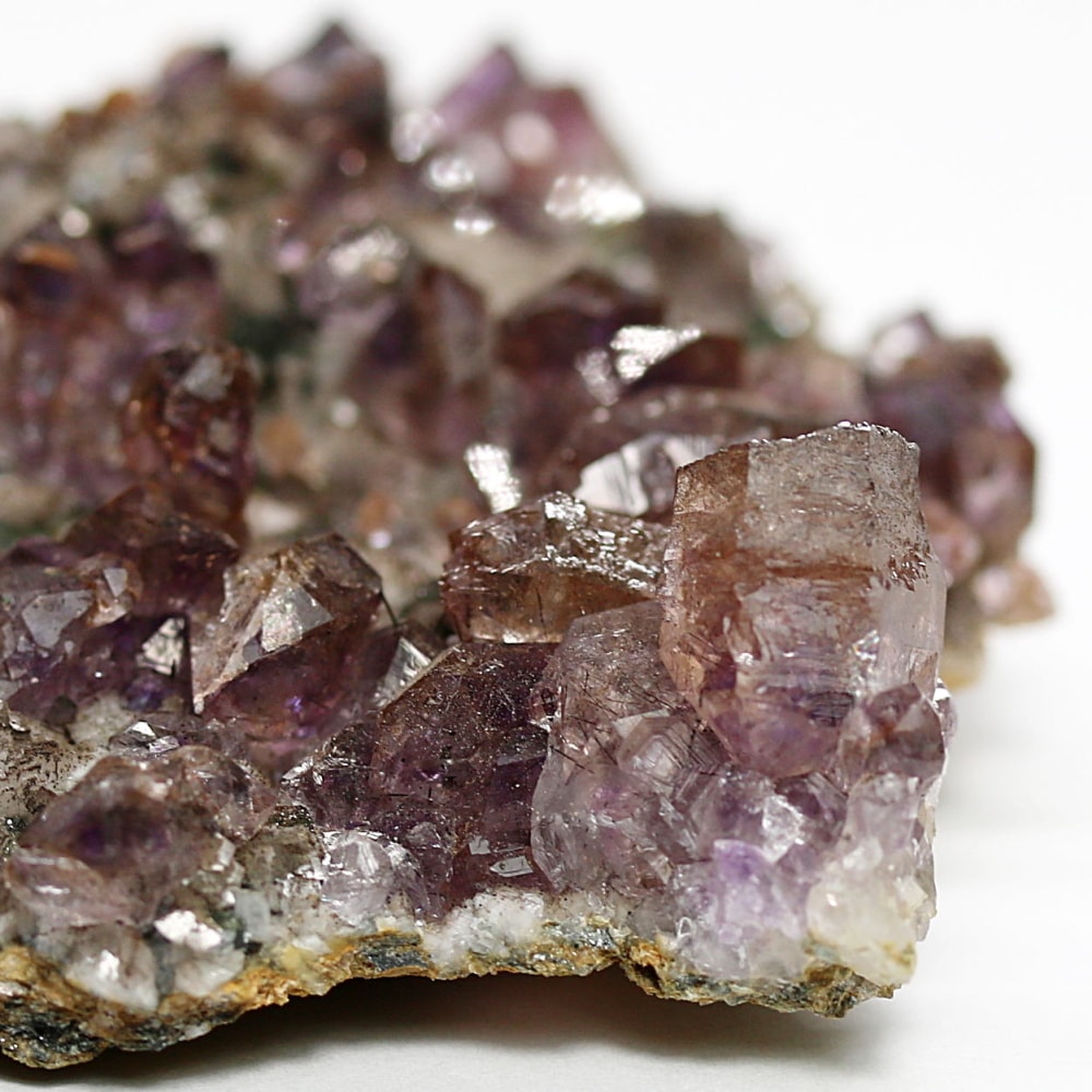 さらに、スーパーセブンの主要構成要素でもある、赤みを帯びたレピドクロサイト(鱗鉄鉱)や銀黒色のゲーサイト(針鉄鉱)といった鉱物がインクルージョンされ、針状・斑点状の模様が結晶内部に浮かび上がる点も見逃せない魅力です!