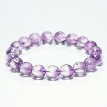 水晶の中にアメジストのファントムが見られる大変珍しいタイプのブレスレットでございます。