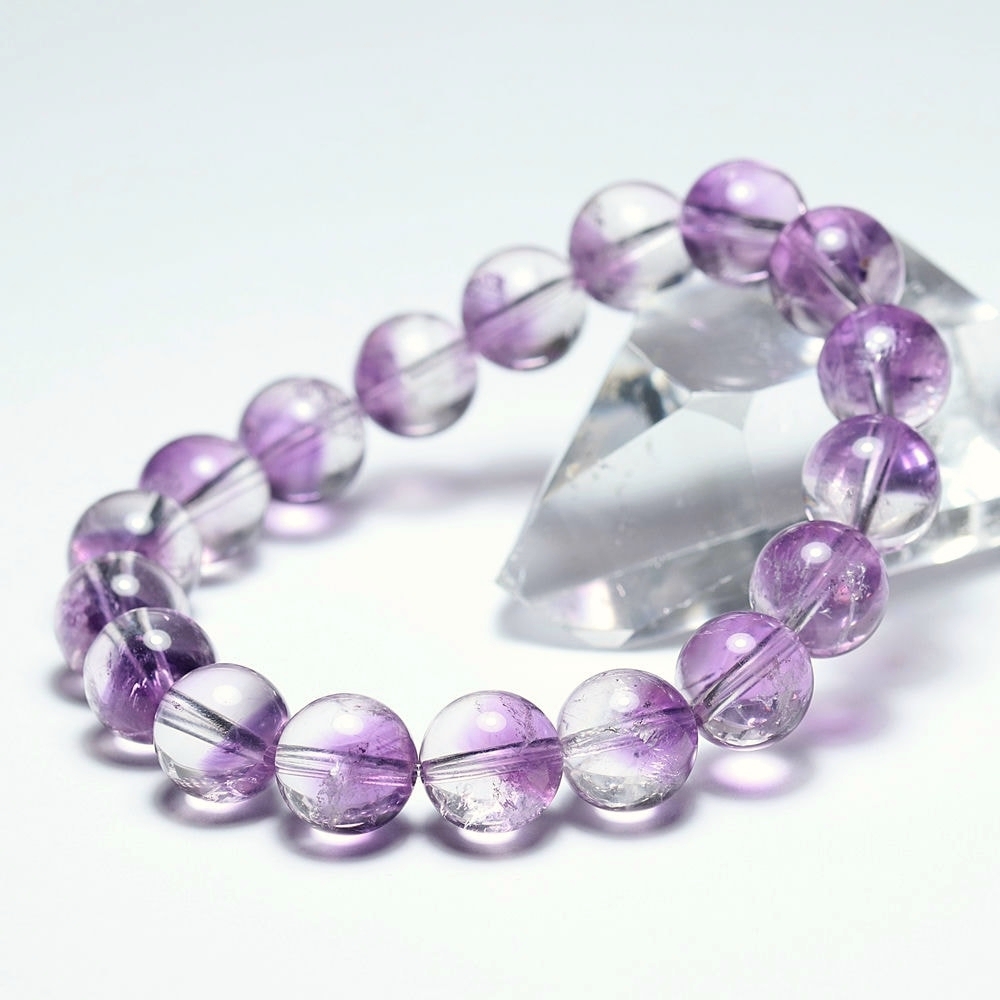 [高品質+]アメジストファントムクォーツブレスレット(約11mm玉・珍しい変種)