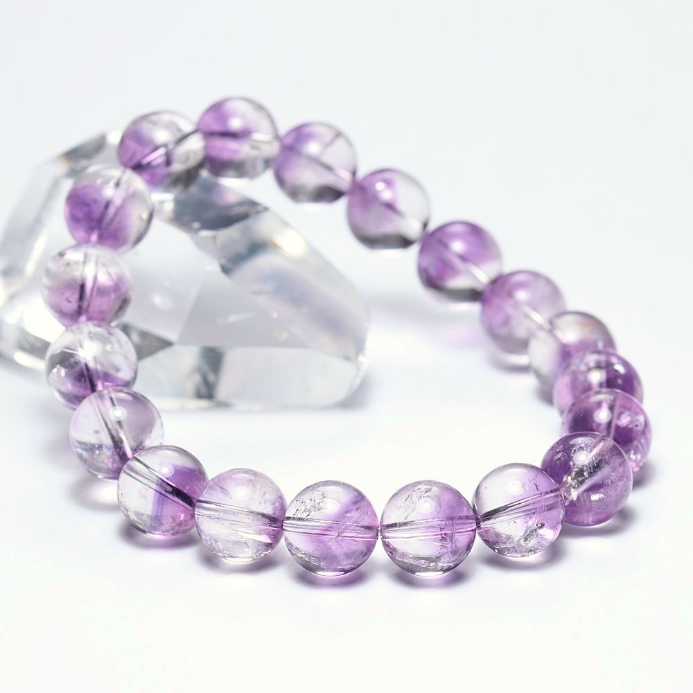 [高品質+]アメジストファントムクォーツブレスレット(約10.5mm玉・珍しい変種)