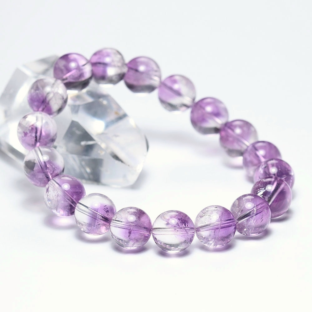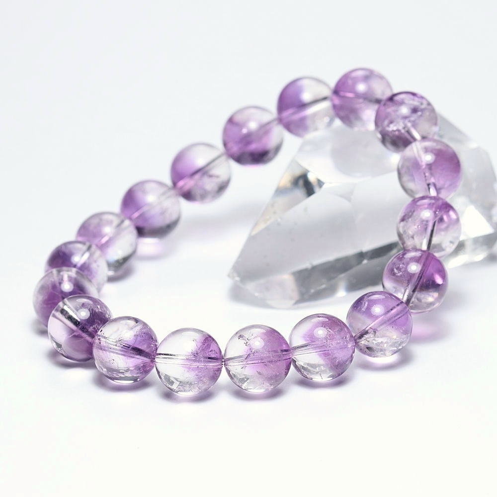 [高品質]アメジストファントムクォーツブレスレット(約10.5mm玉・珍しい変種)