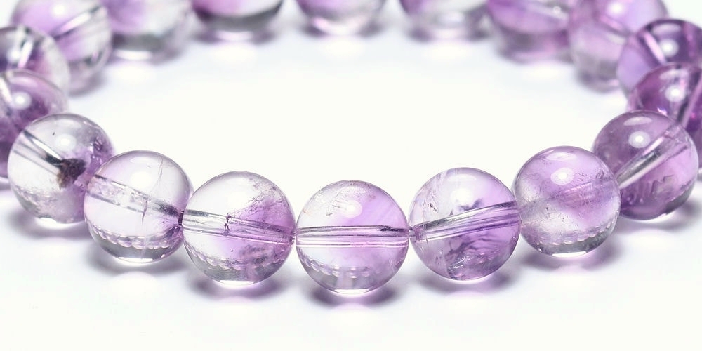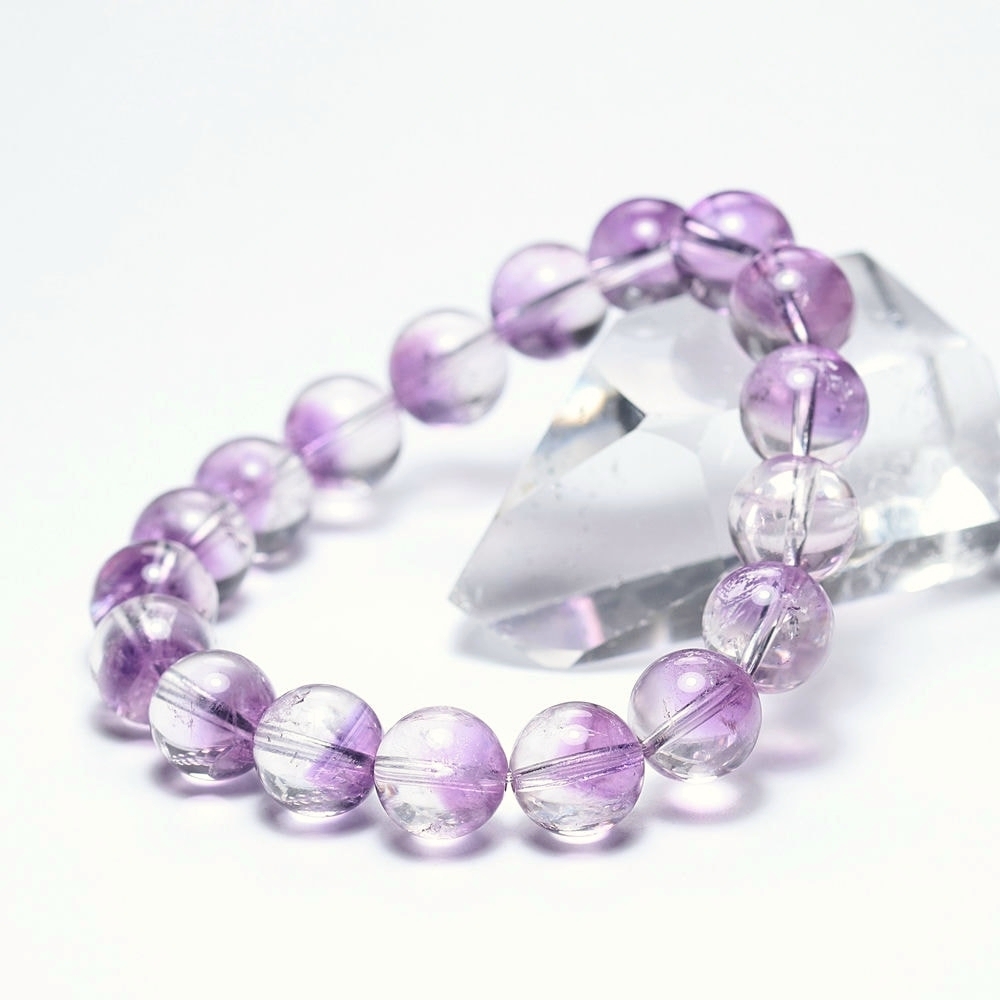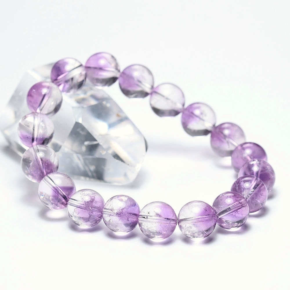 [高品質]アメジストファントムクォーツブレスレット(約10.5mm玉・珍しい変種)¥20,300クイックガイド送料