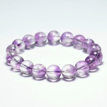 水晶の中にアメジストのファントムが見られる大変珍しいタイプのブレスレットでございます。