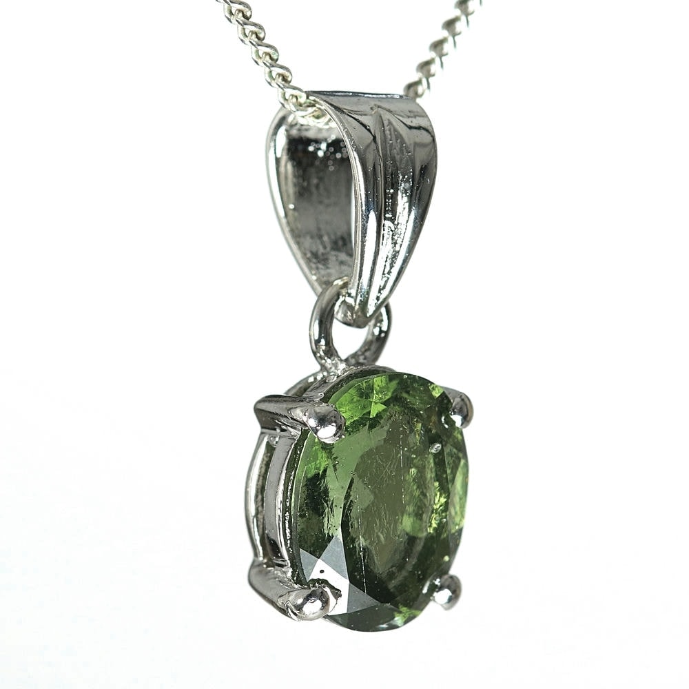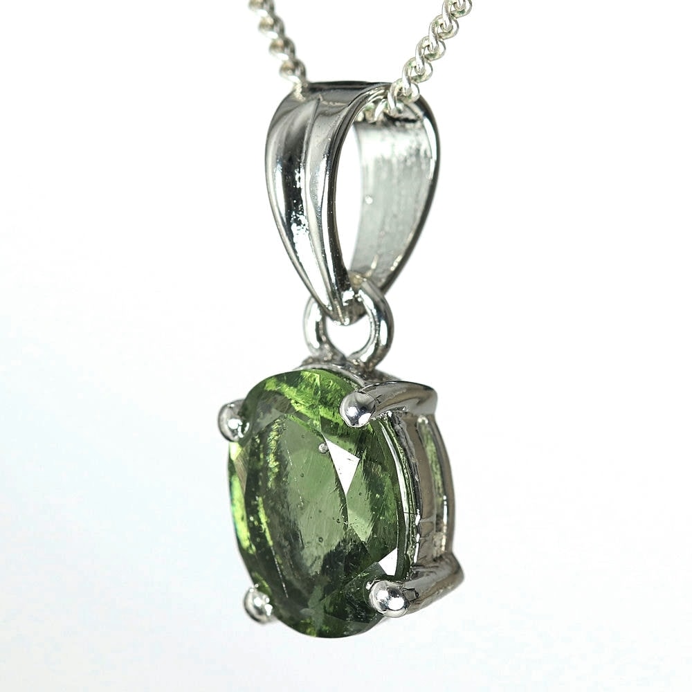 天然モルダバイトジュエリーカットペンダントトップ(シルバー925・オーバル/石高約9.0mm)