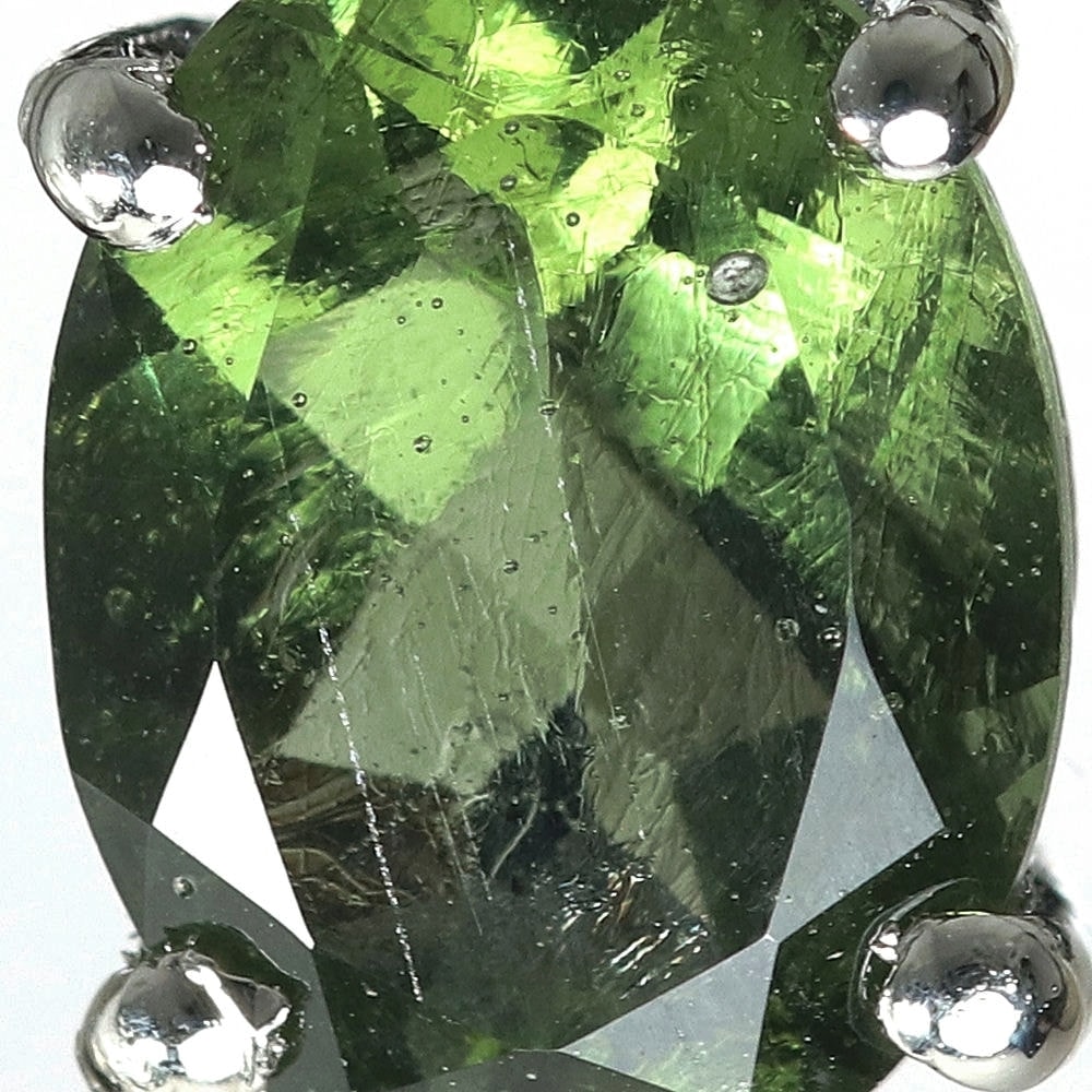 使用しているモルダバイトルースは発色も濃く、モルダバイト(テクタイト)独特の内包も見られる良質なルースを使用しています。