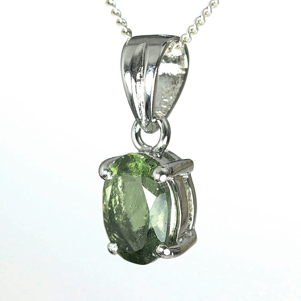 天然モルダバイトジュエリーカットペンダントトップ(シルバー925・オーバル/石高約9.0mm)