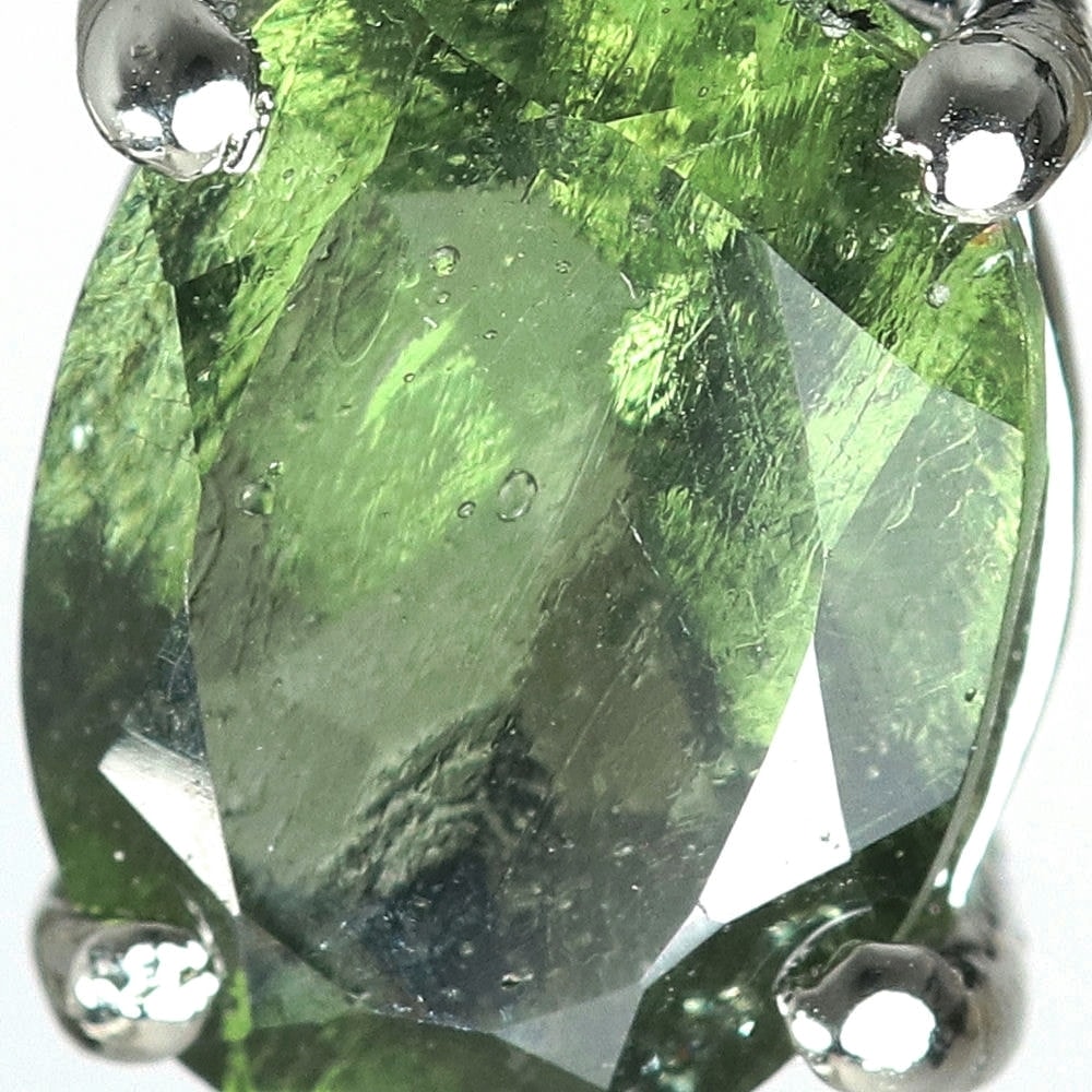 使用しているモルダバイトルースは発色も濃く、モルダバイト(テクタイト)独特の内包も見られる良質なルースを使用しています。